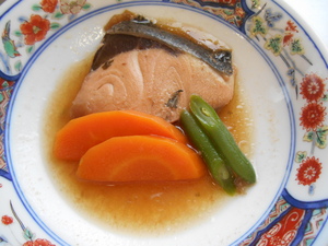 茄子のはさみ揚げ(写真左)、魚の梅煮(写真右)