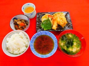 選択食 2017年01月16日 12月13日この日の昼食は、選択食を実施しました。 メニューごはん天ぷら・刺身煮じゃあみそ汁豆乳プリン天ぷらかお刺身、事前にアンケートを取ってお好きな方を選んでいただきました。