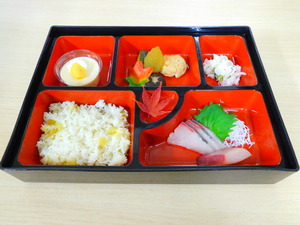 紅葉御膳 2017年11月27日 11月20日 紅葉御膳●●メニュー●●芋ご飯刺身お煮しめカブの酢の物茶碗蒸しデザート旬の食材を使って、彩り良い御膳が出来上がりました。 普段食べる機会の少ないお刺身が特に好評でした(*^_^*)