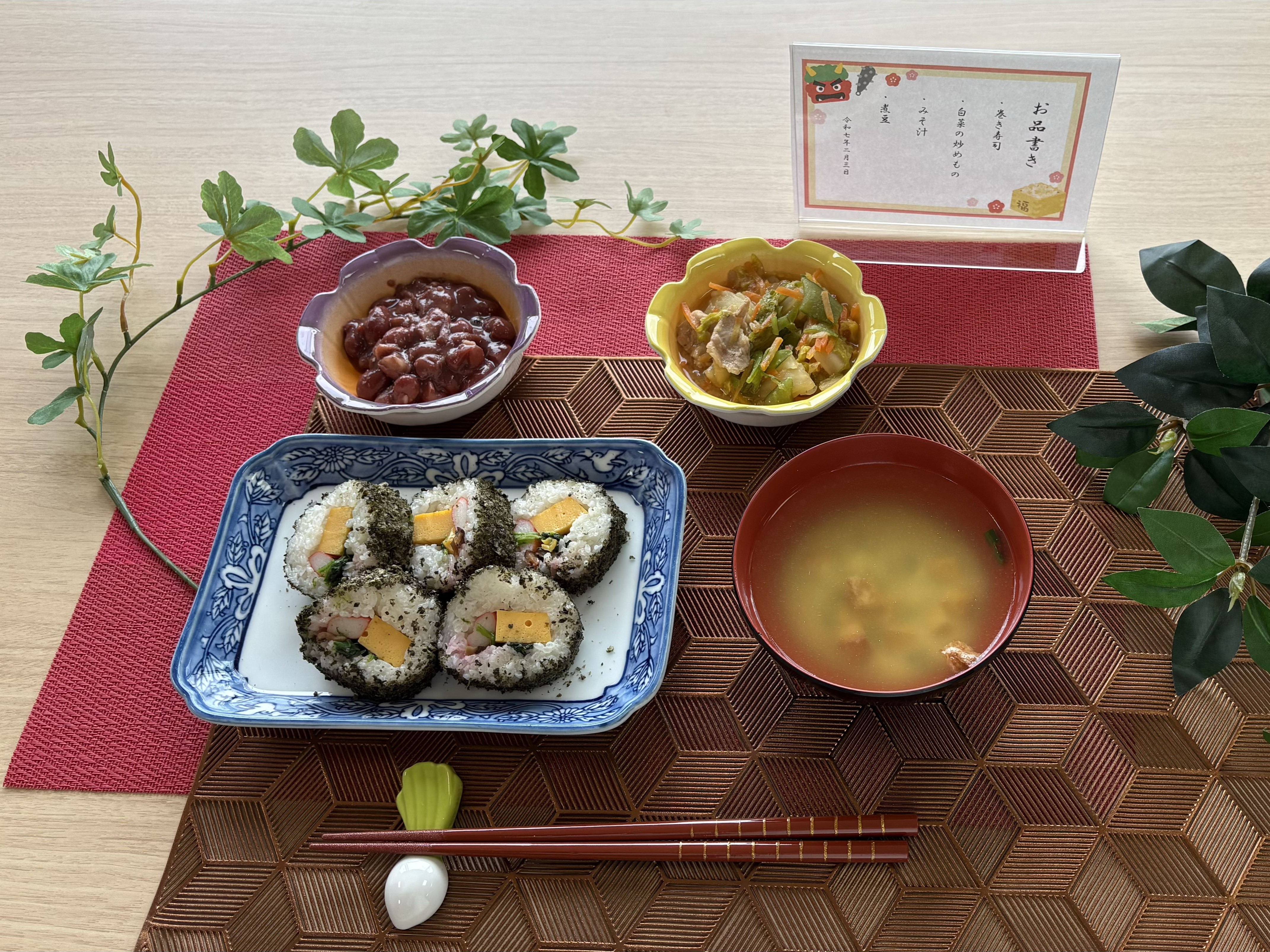天寿荘では、海苔を砕いてまぶし食べやすく工夫しています。