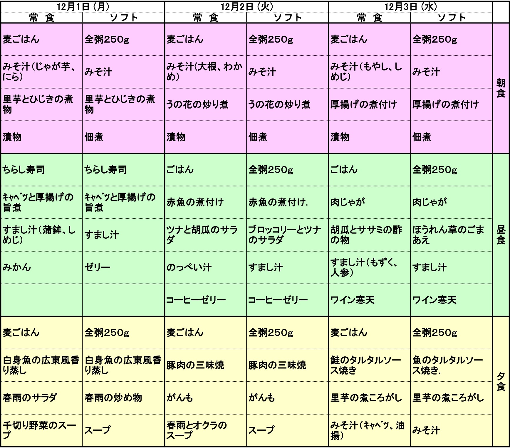 12/1~12/3の献立表