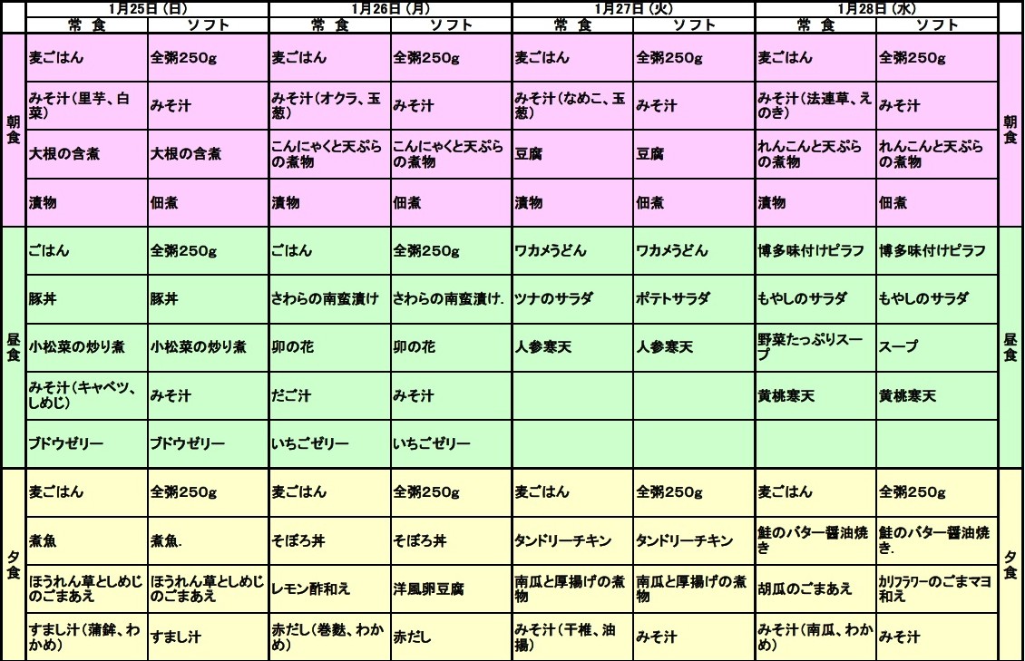 1/25~1/28の献立表