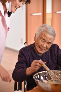 栄養士の話しを聞きながら、ユニットごとにチーズケーキ作りを行いました。