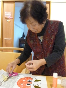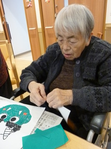 節分に向けて、貼り絵で鬼を作り、ユニットの飾り付けをしました♪