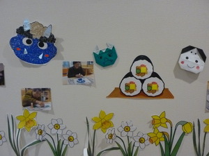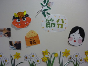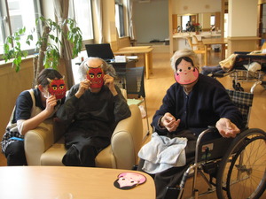 2月3日には、入所者様に鬼や福のお面をかぶっていただき、