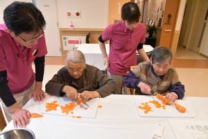 3階ユニットの懇談会では、ご家族様にふるまうために豚汁を作りました(*^_^*)