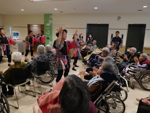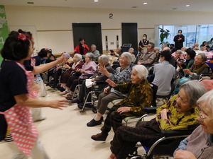 初めは手拍子だけだった入居者様たちも、徐々に身体が動きだし・・・