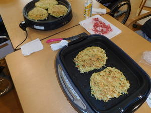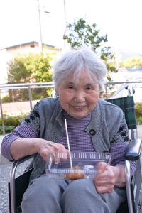天寿荘の中庭で、買って帰ったたこ焼きをお話しながら頂きました。