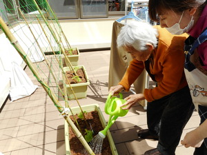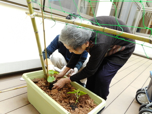 ゴーヤの苗を植え、皆で協力してお世話を頑張りました!!