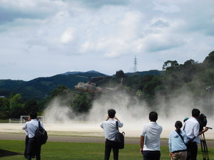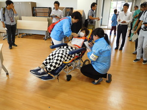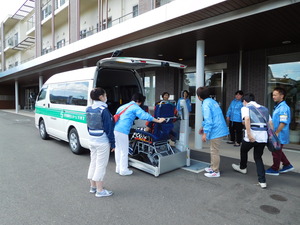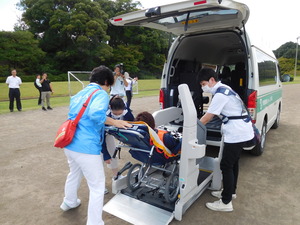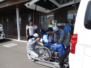 近くの競技場までヘリで移送し、リフト車で天寿荘まで運びました。