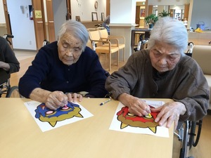 みんなで、鬼とお多福のお面作りをしました。
