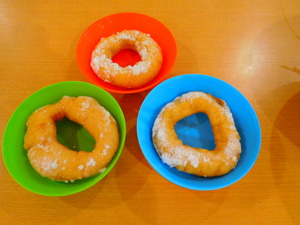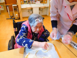 1Fユニットで栄養士の指導のもと、ドーナツ作りをしました。