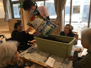 2-4ユニットでプランターの土の入れ換えを行い、種まきをしました。