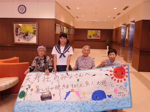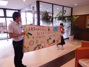 東原庠舎中央校の9年生から、手作りの暑中お見舞いのポスターをいただきました。