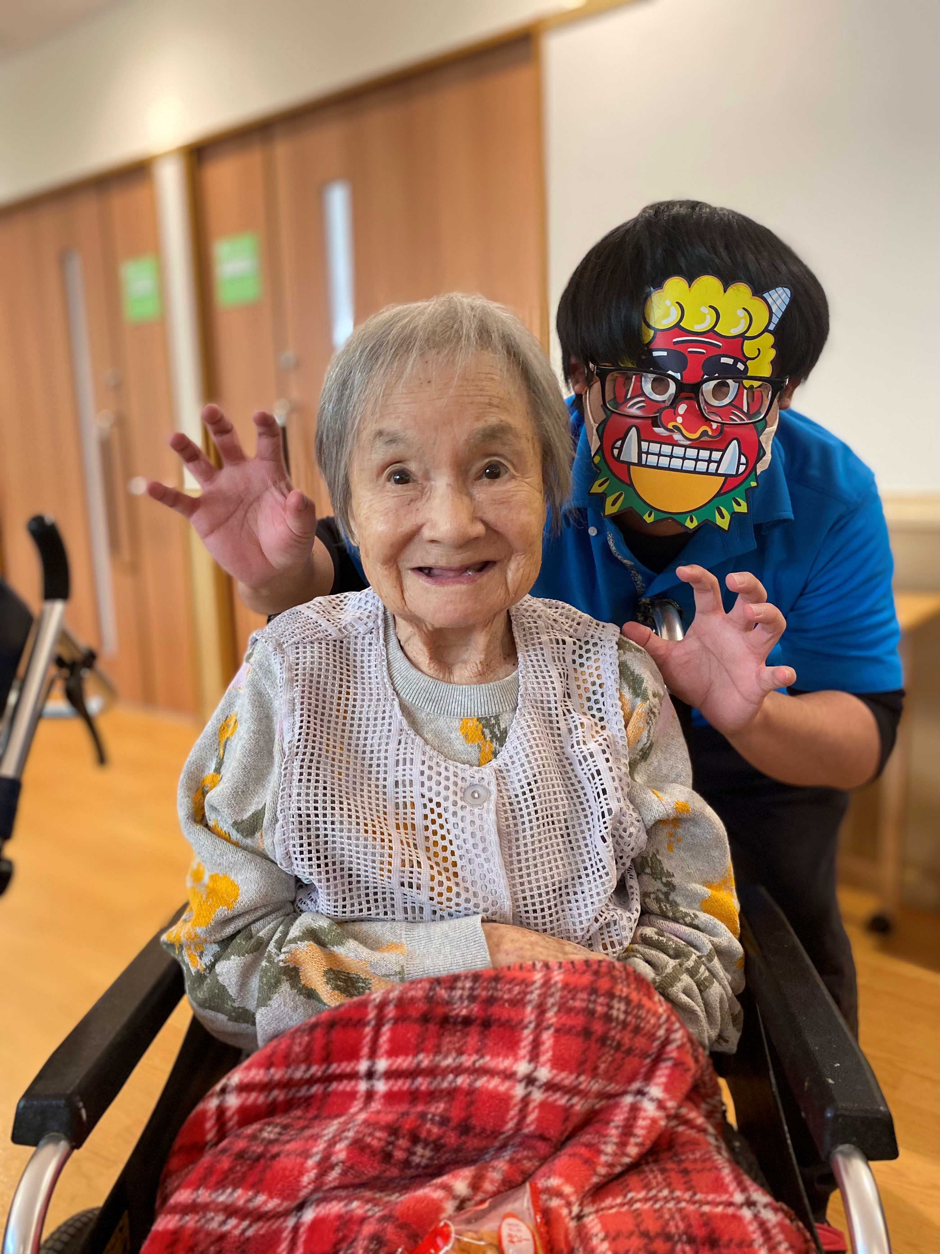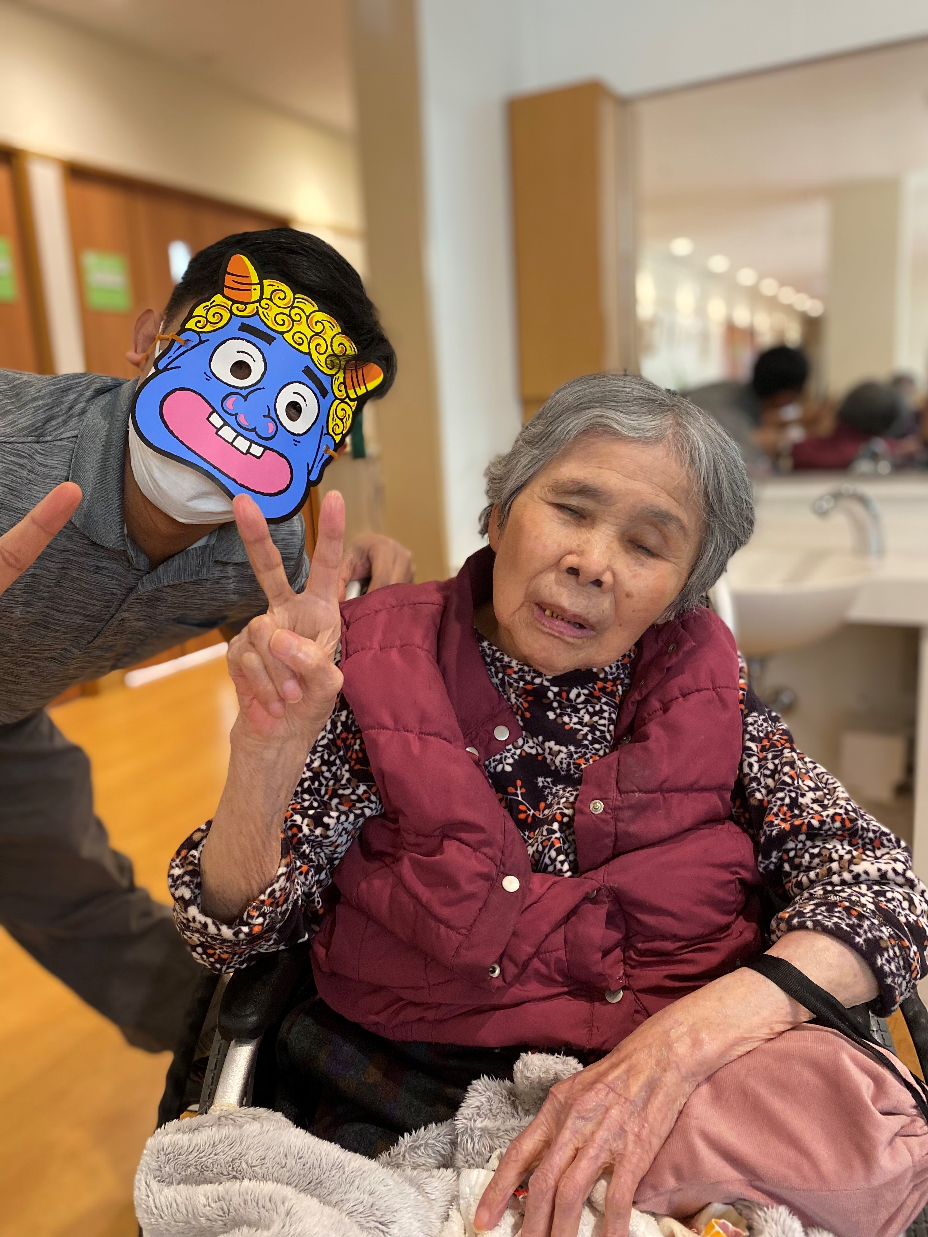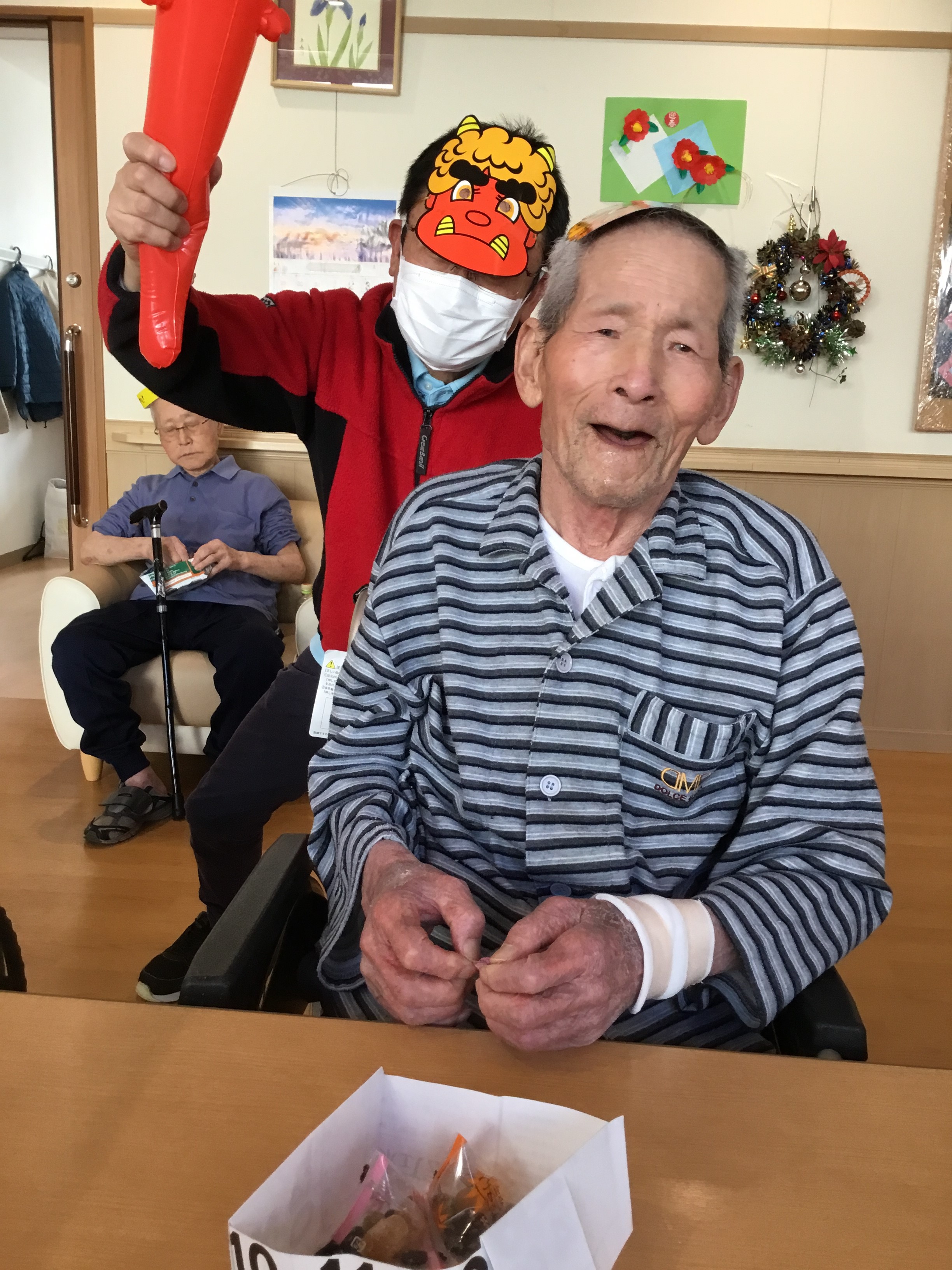 各ユニットで、豆まきをして厄祓いをしました。