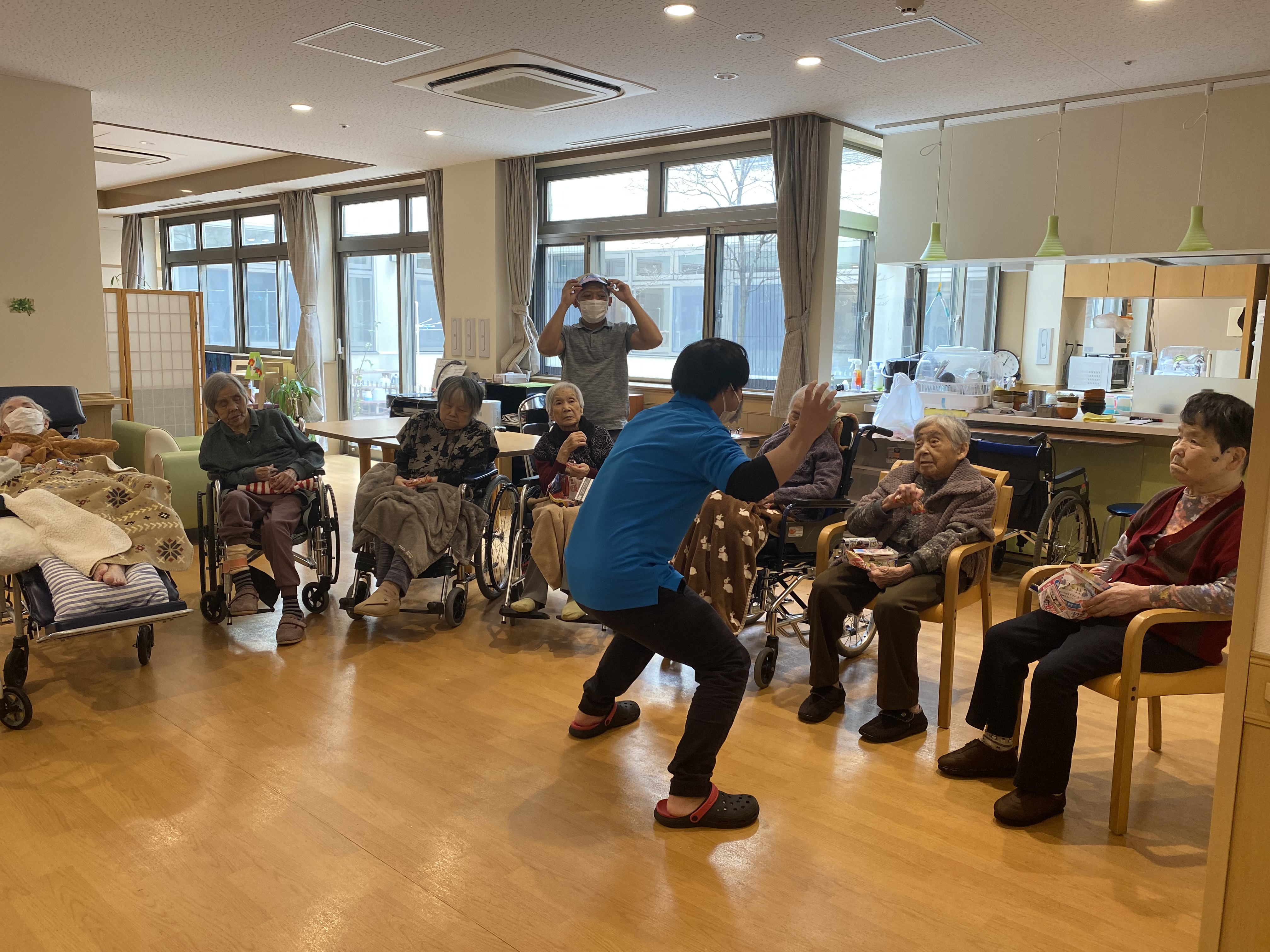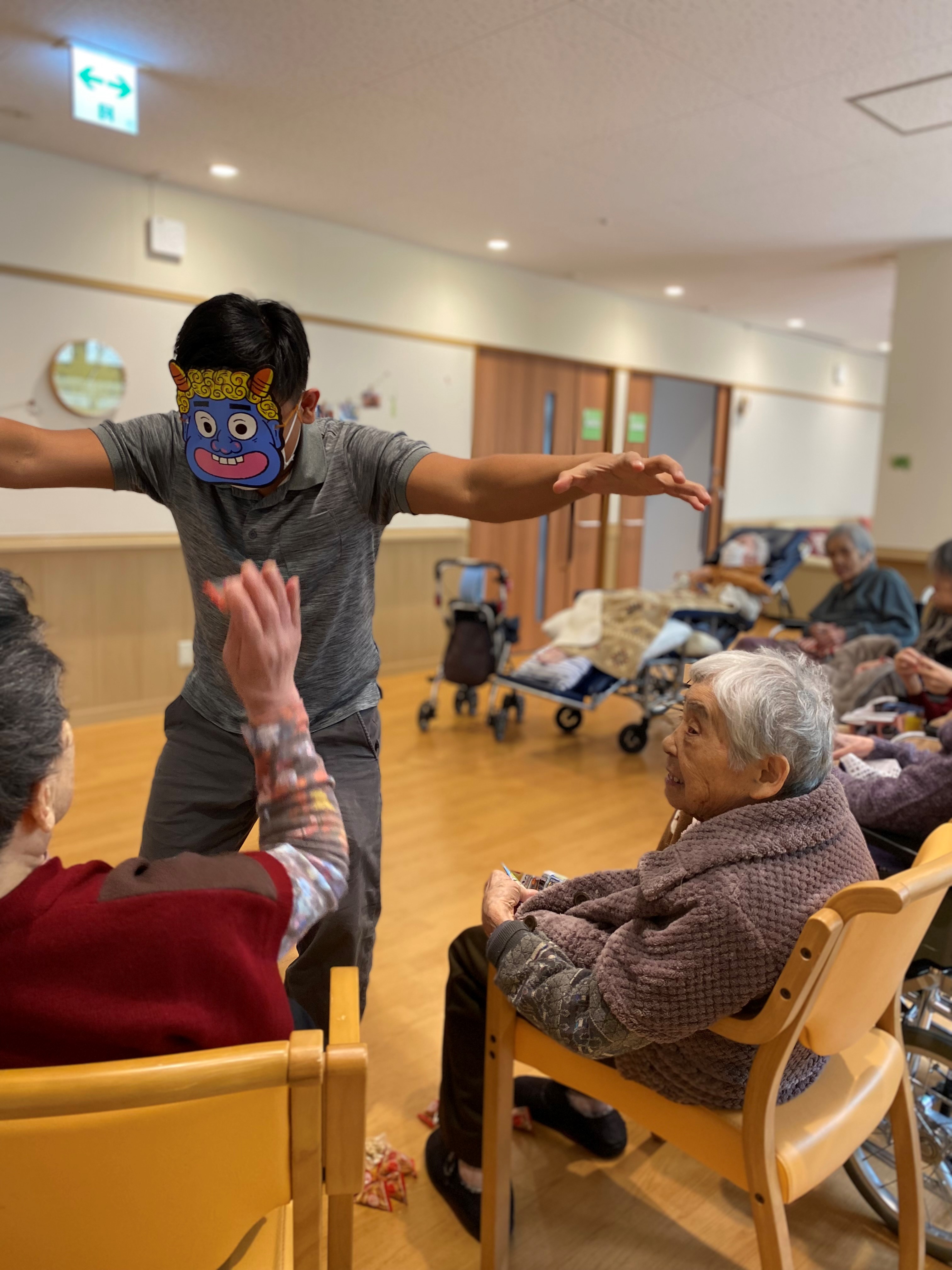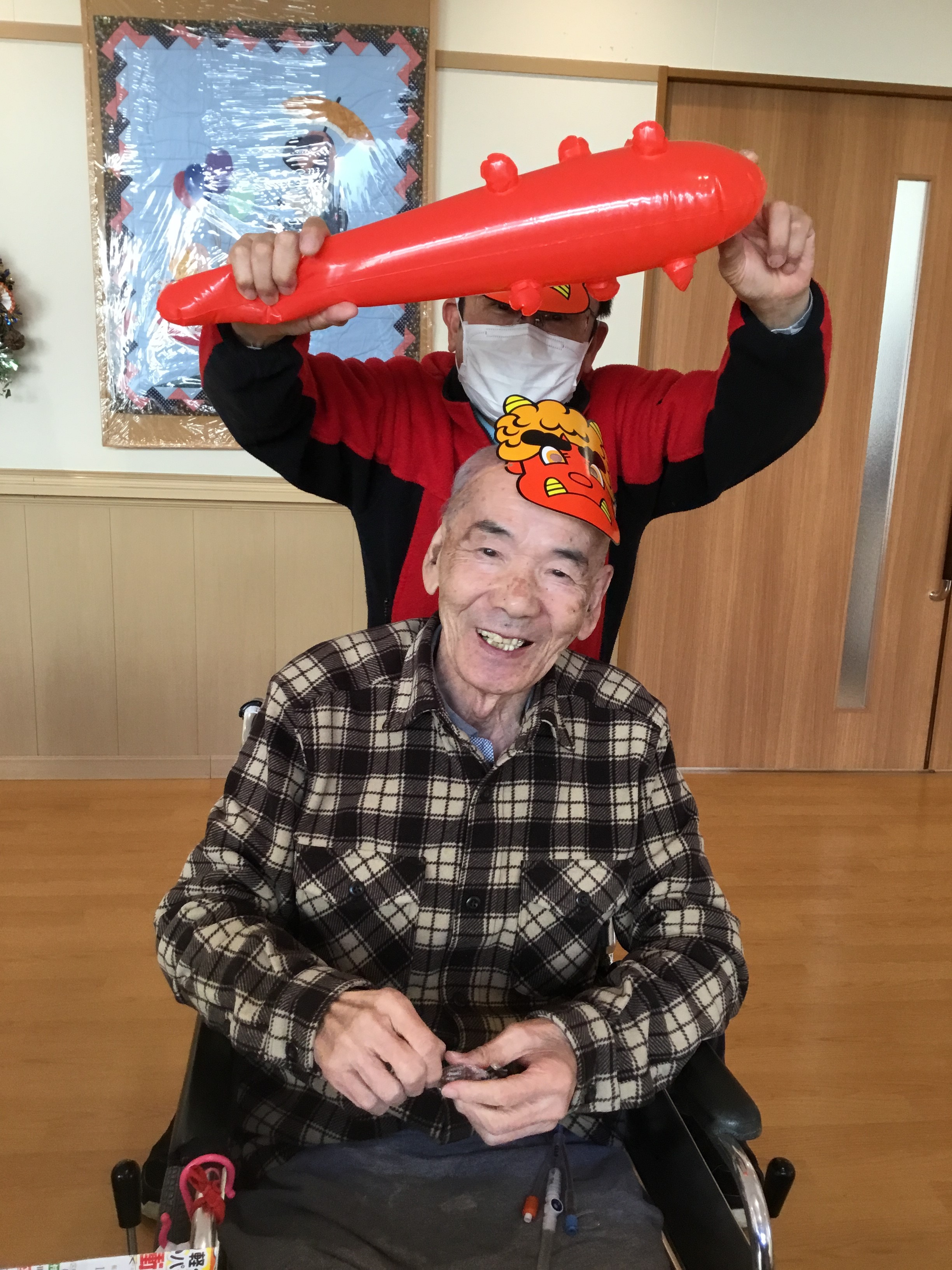 各ユニットで、豆まきをして厄祓いをしました。