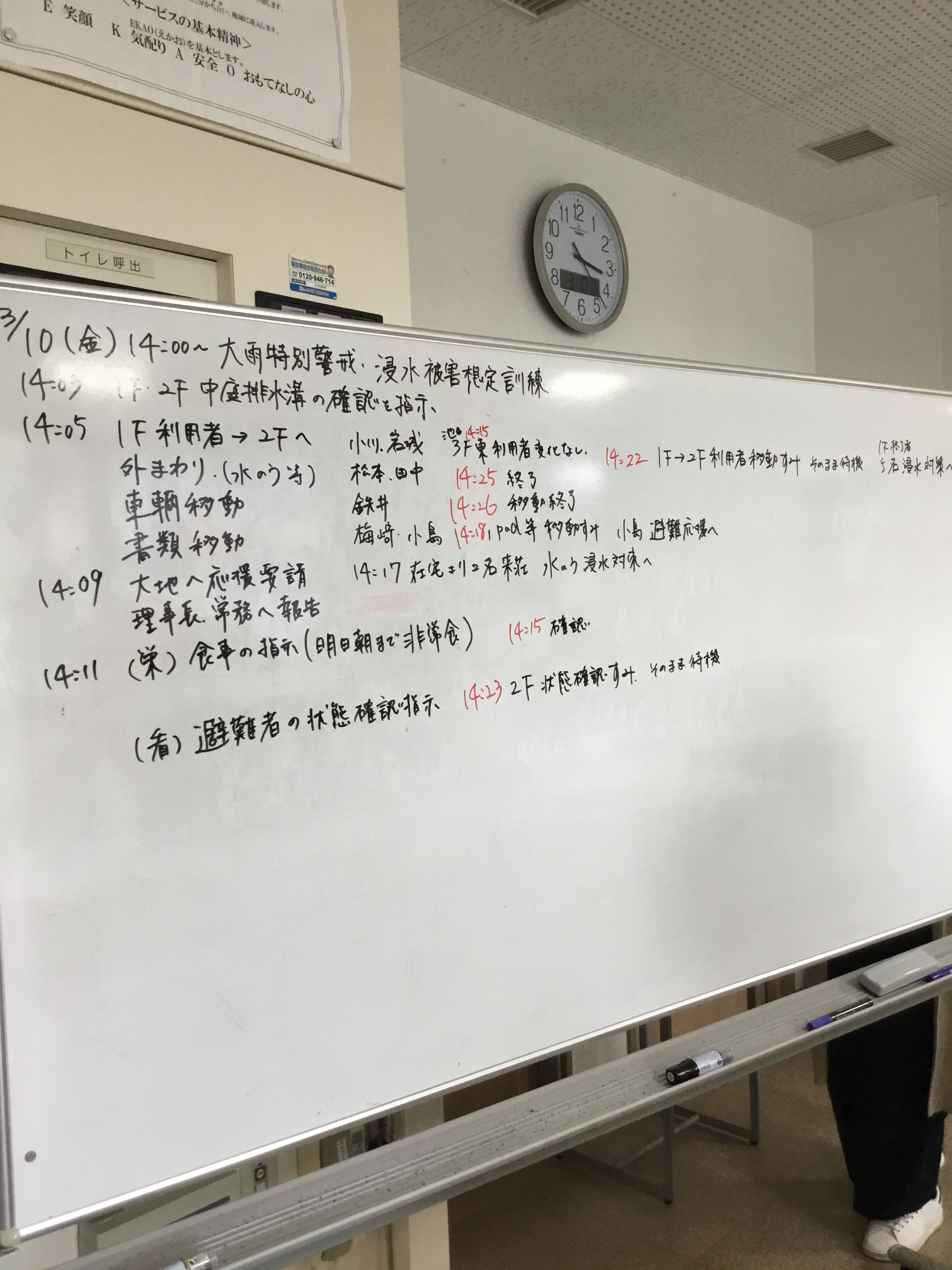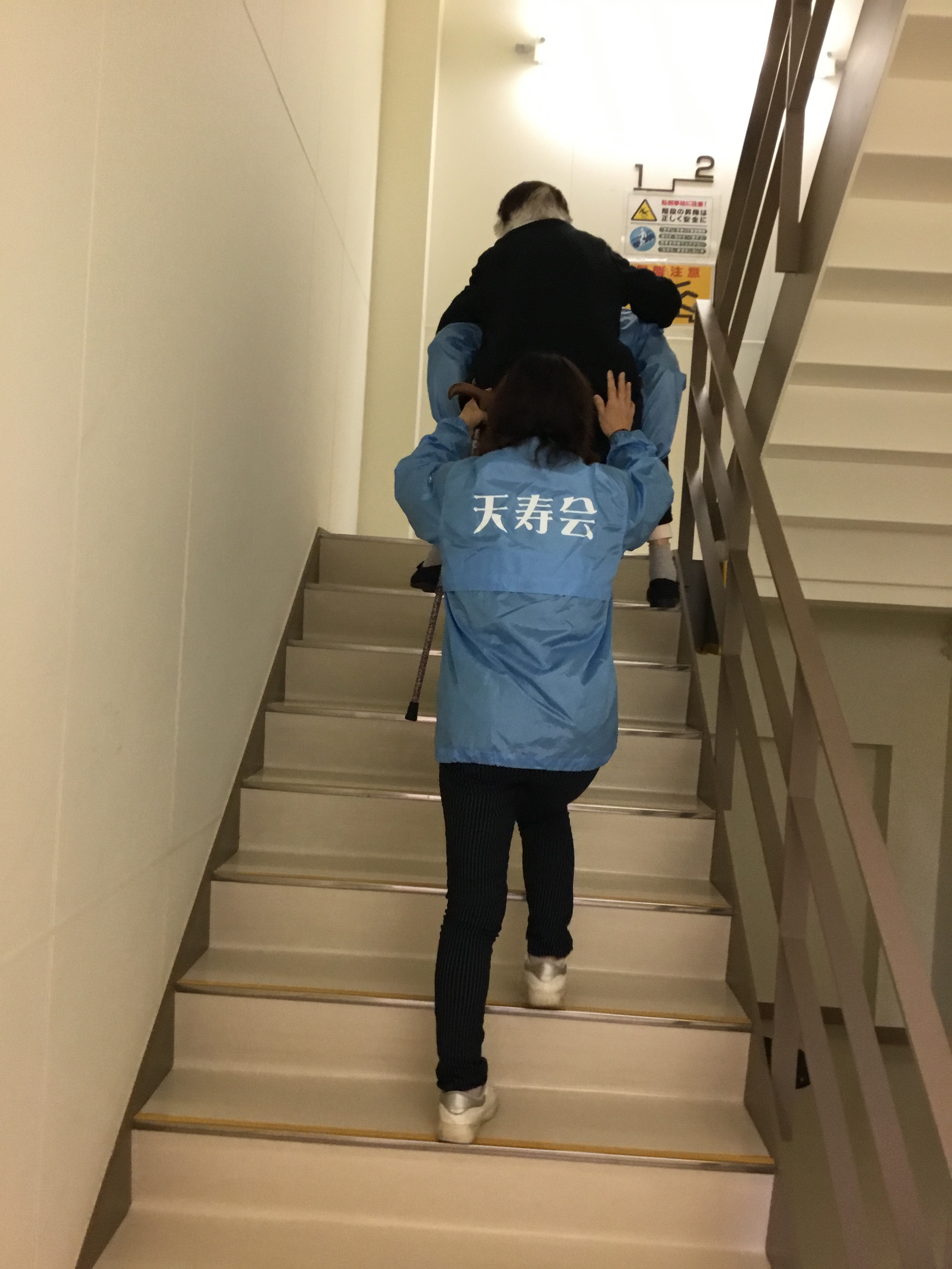 1階の居室のご利用者は2階へと垂直避難しました。