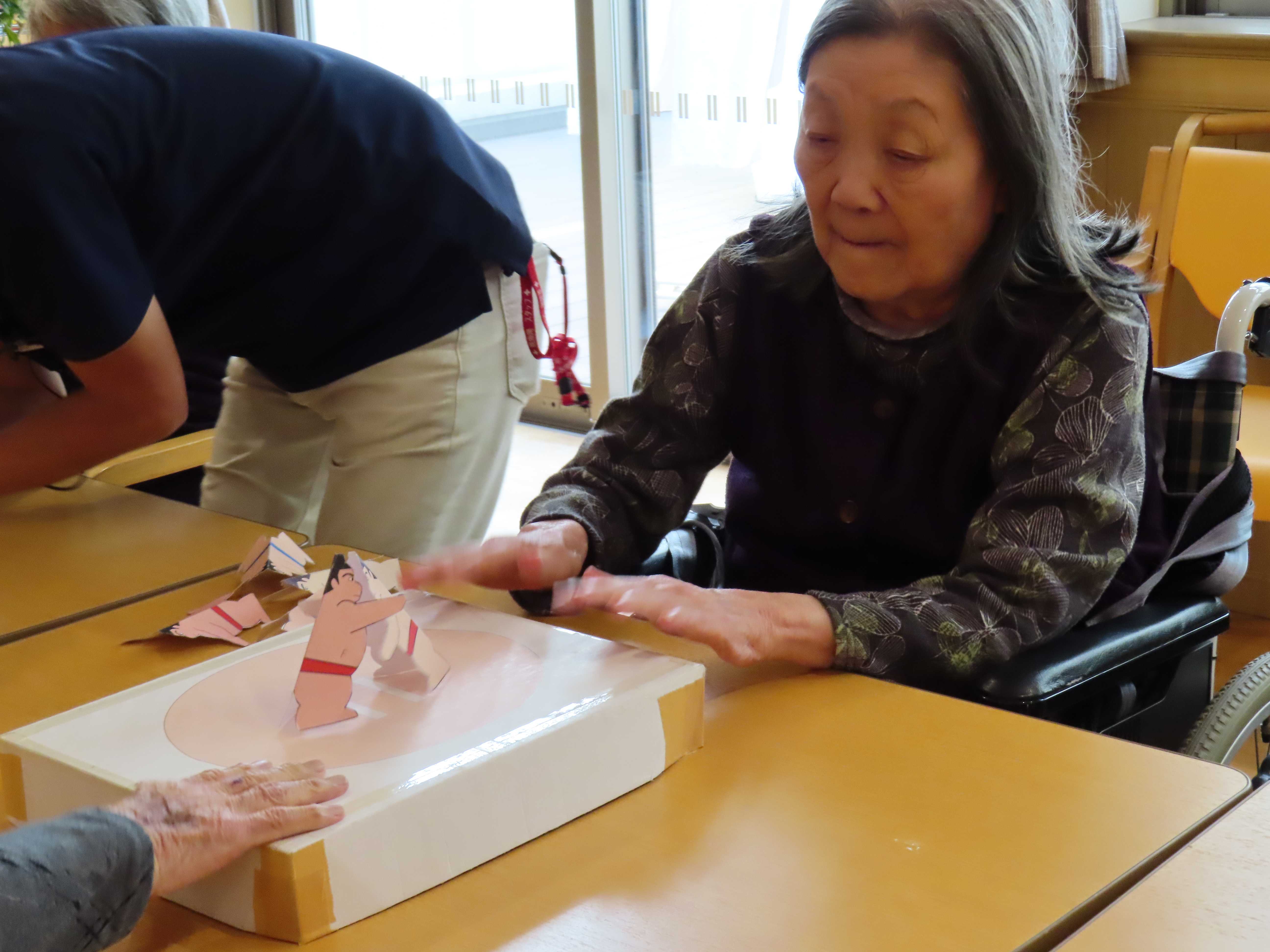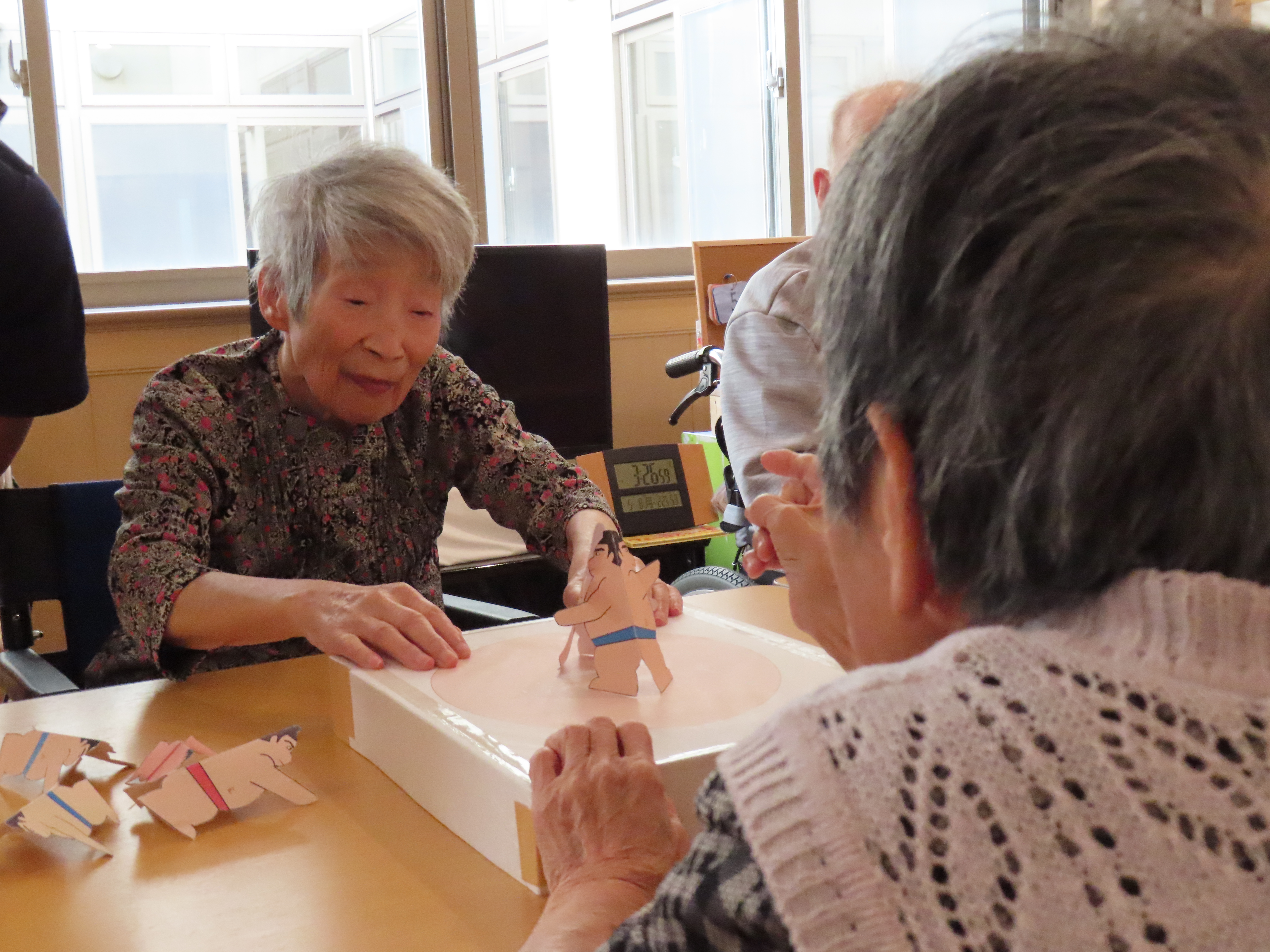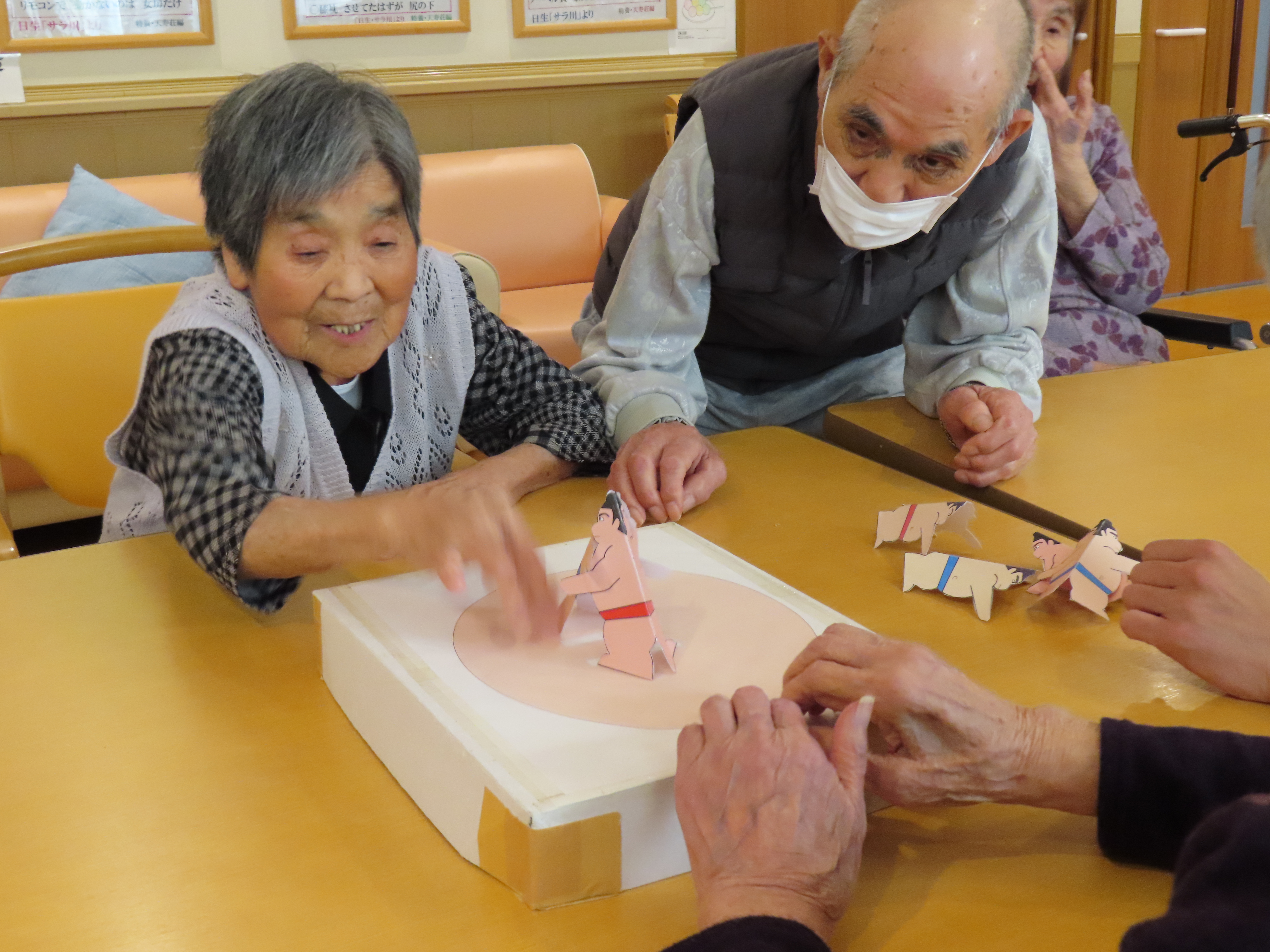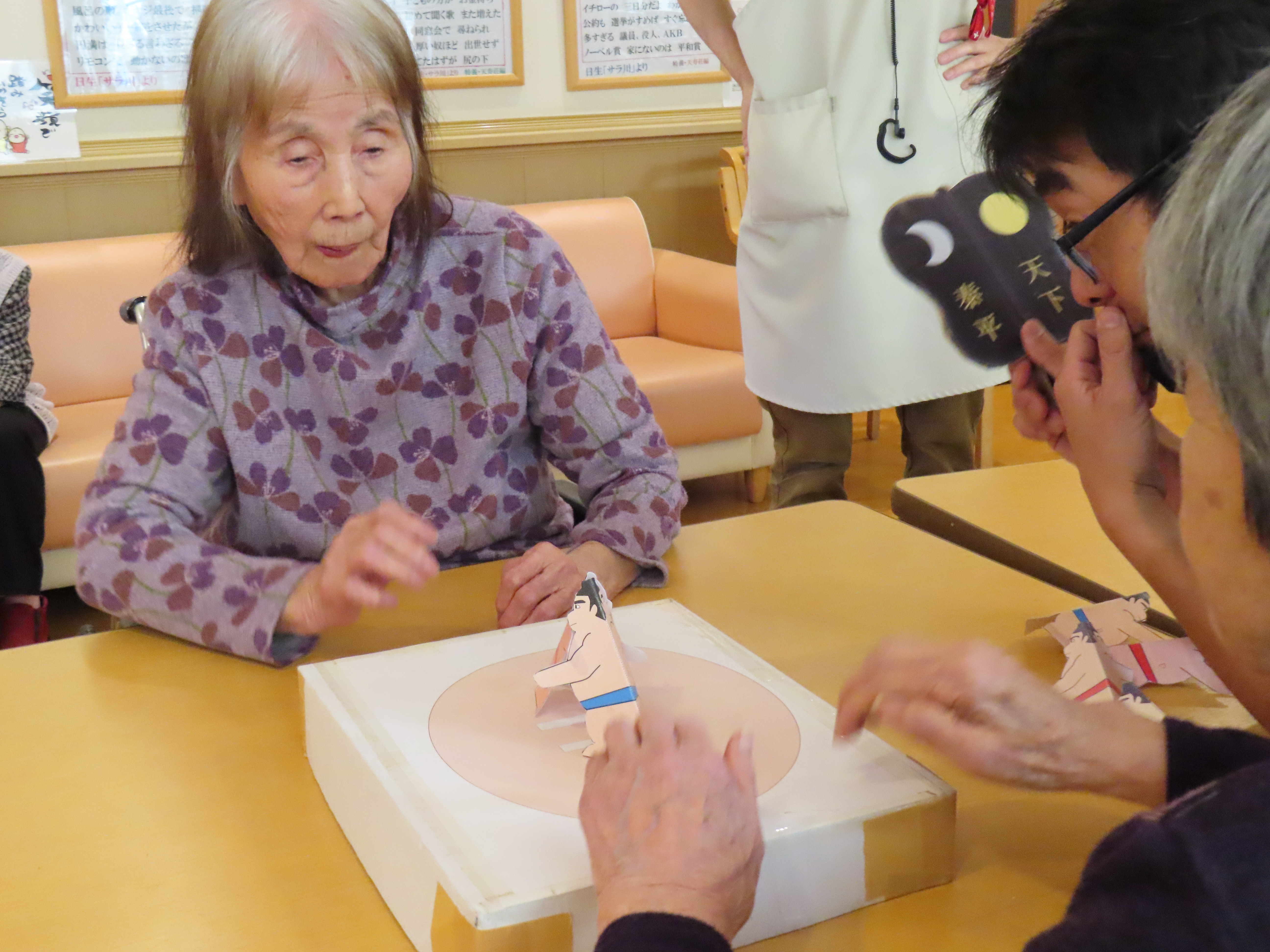 5月8日、1階ユニットで紙相撲大会を開催しました