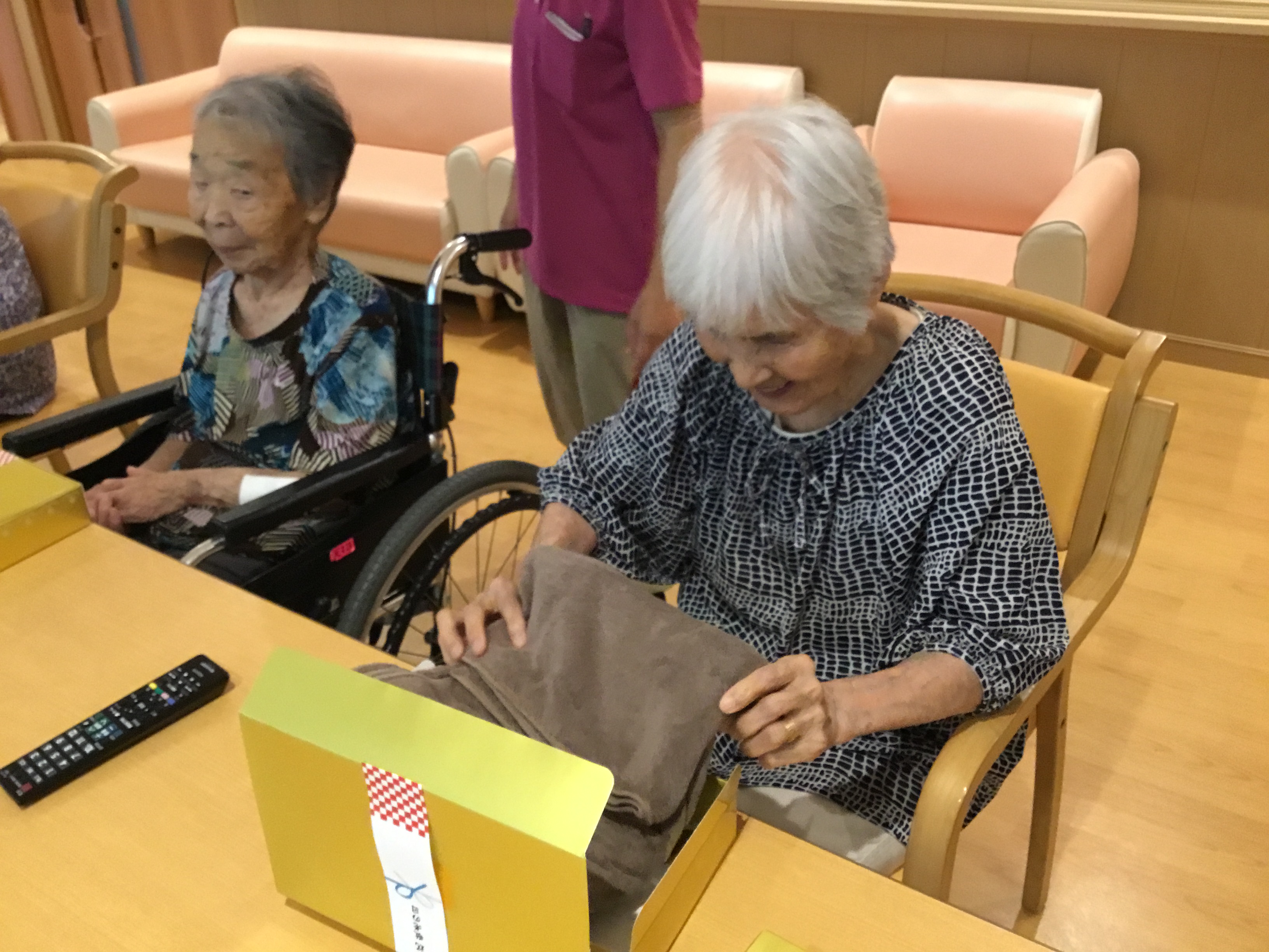 9月15日、敬老の日を前に、ご利用者へ記念品をお渡ししました。