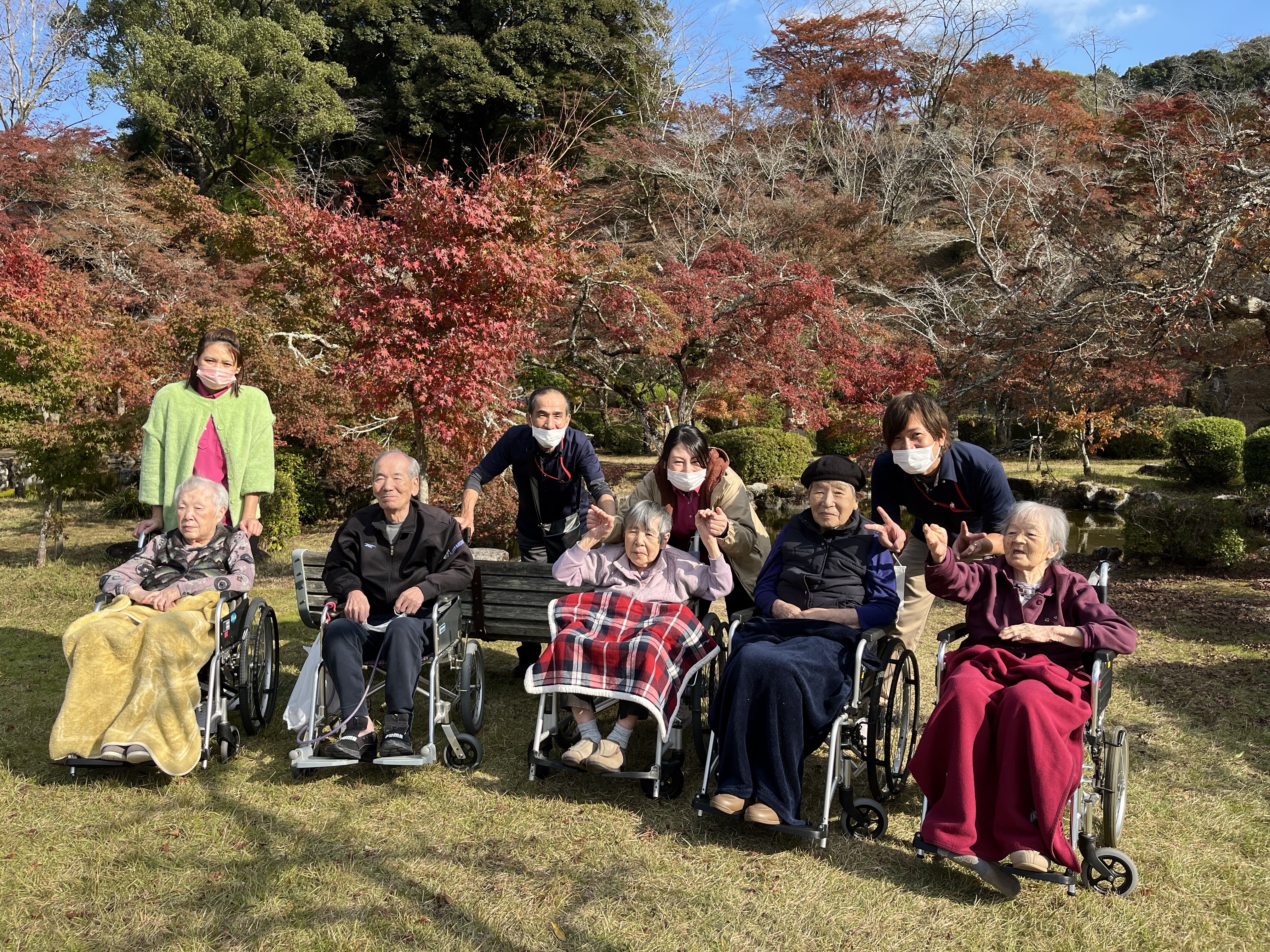 2階1・2ユニット、3階1・2ユニットに続き、西渓公園へ紅葉狩りに出掛けました。