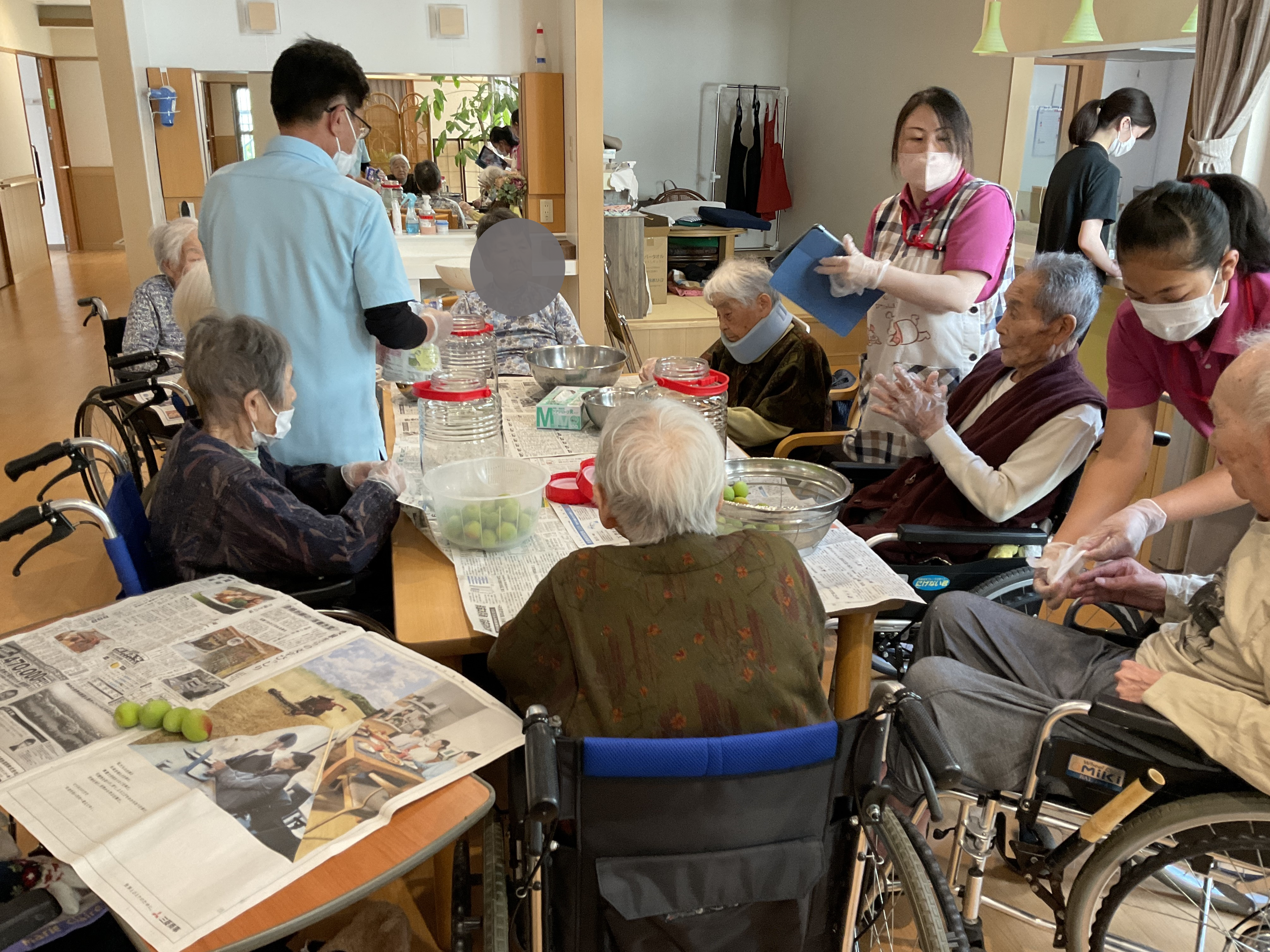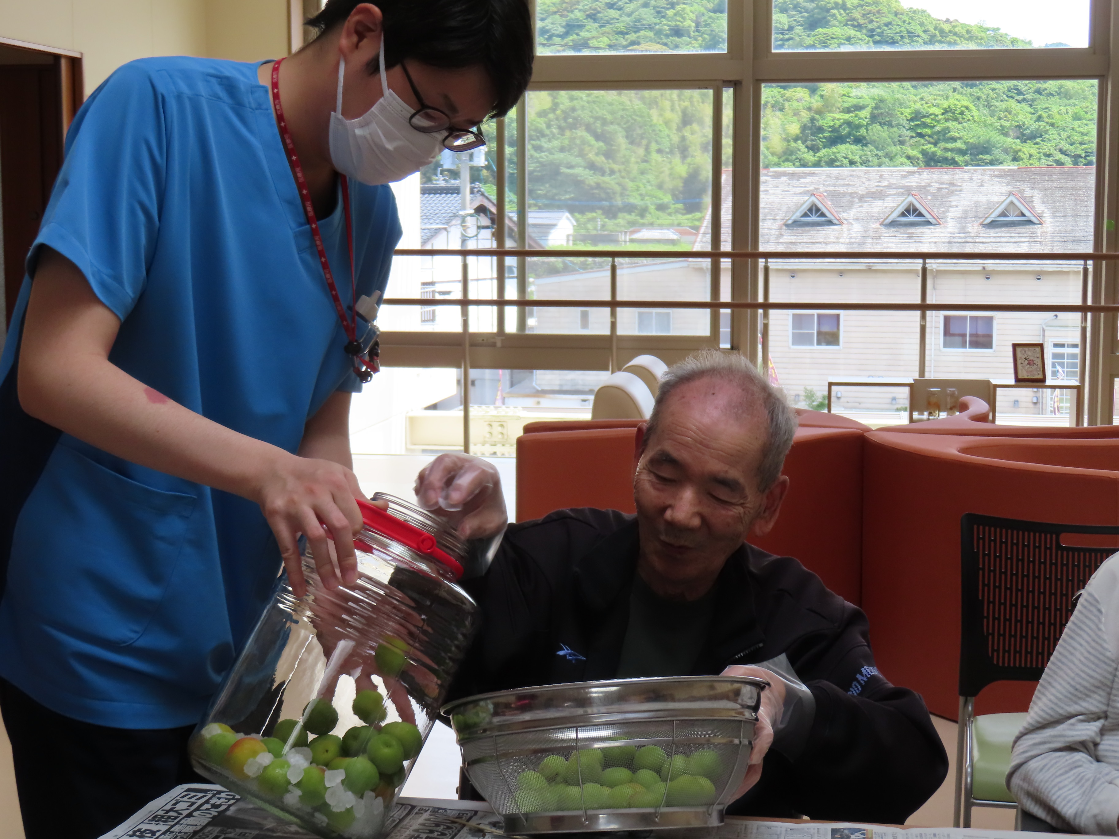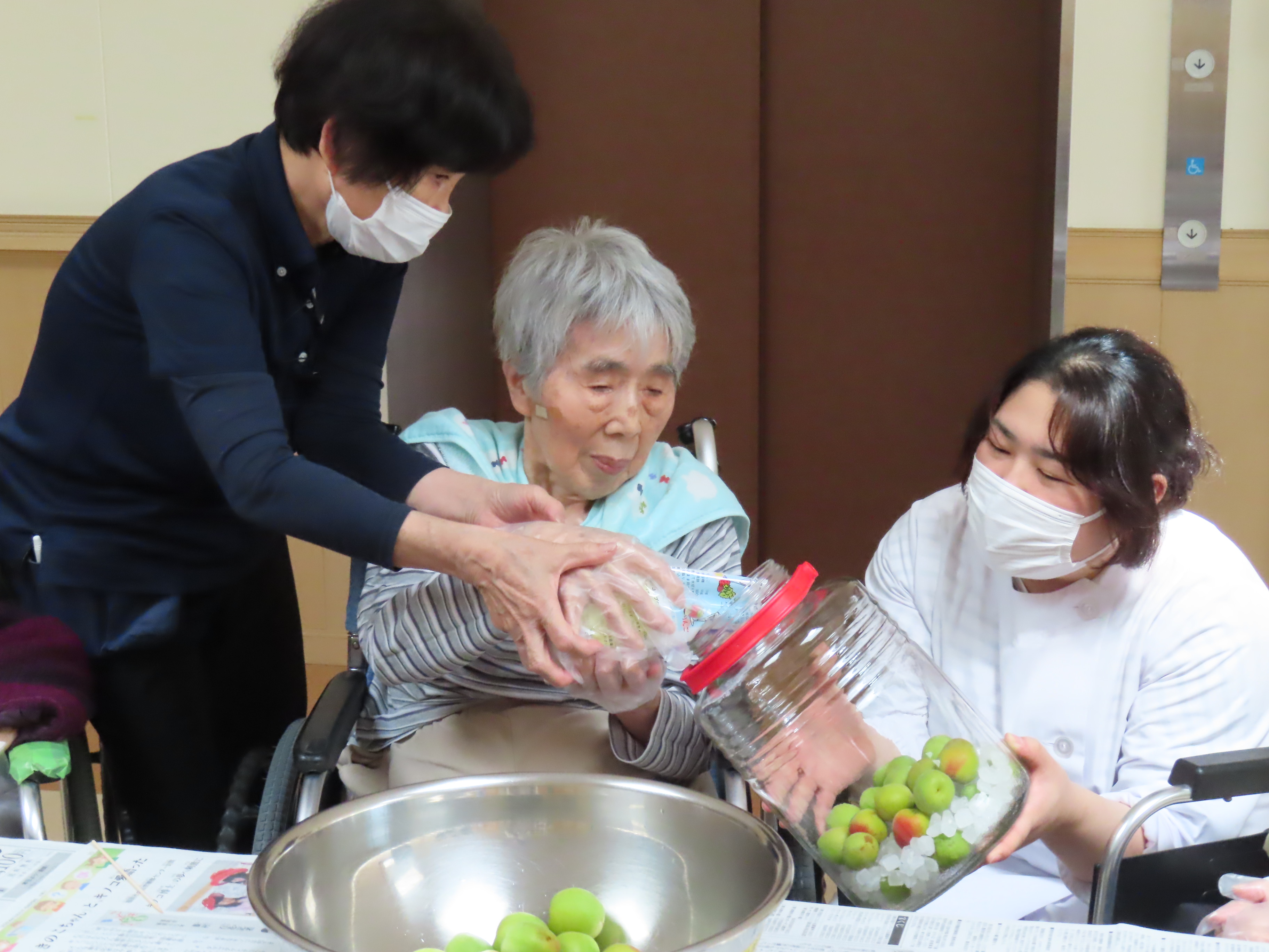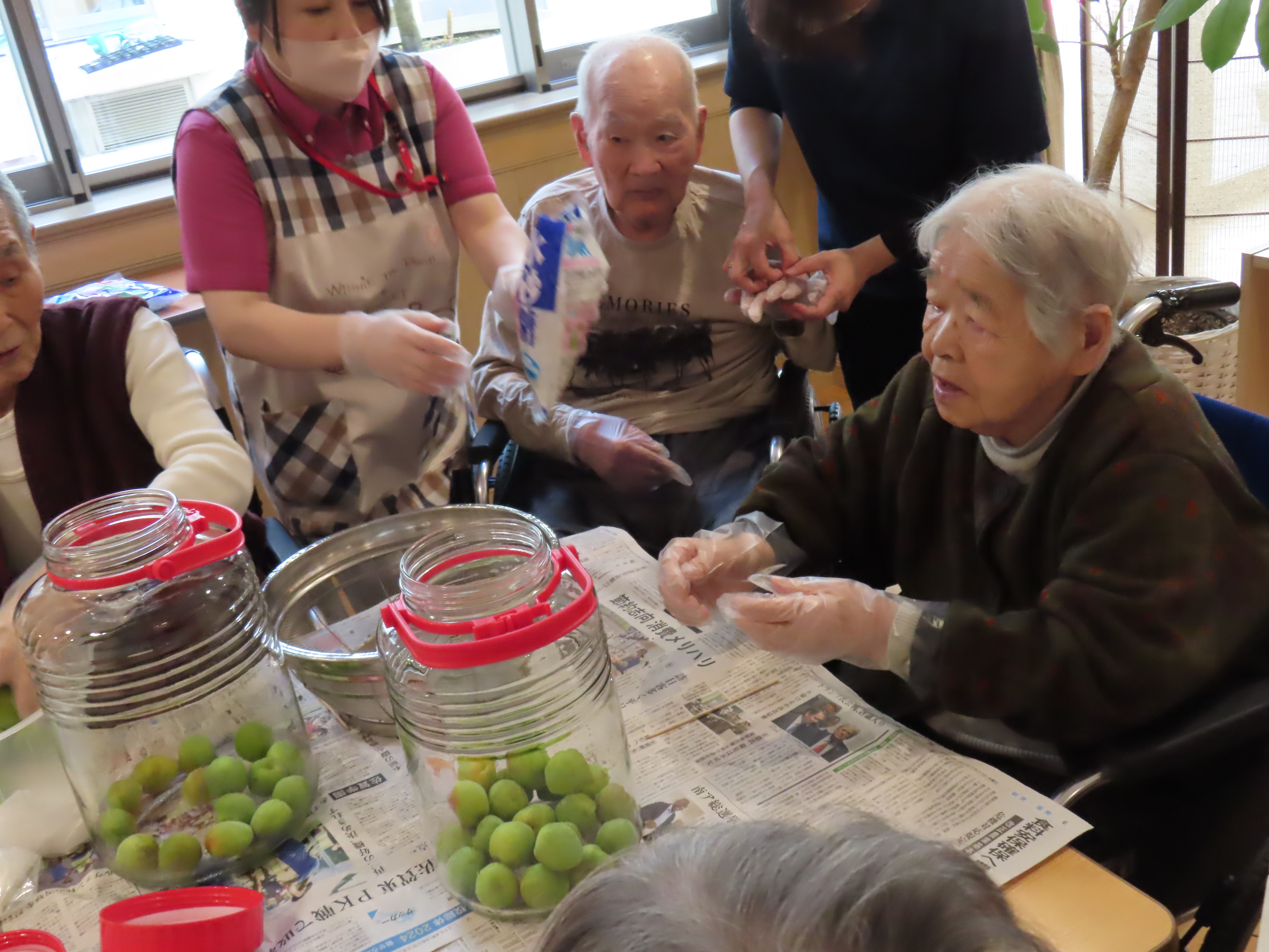 天寿荘でも5月31日に梅ジュース作りを行いました。