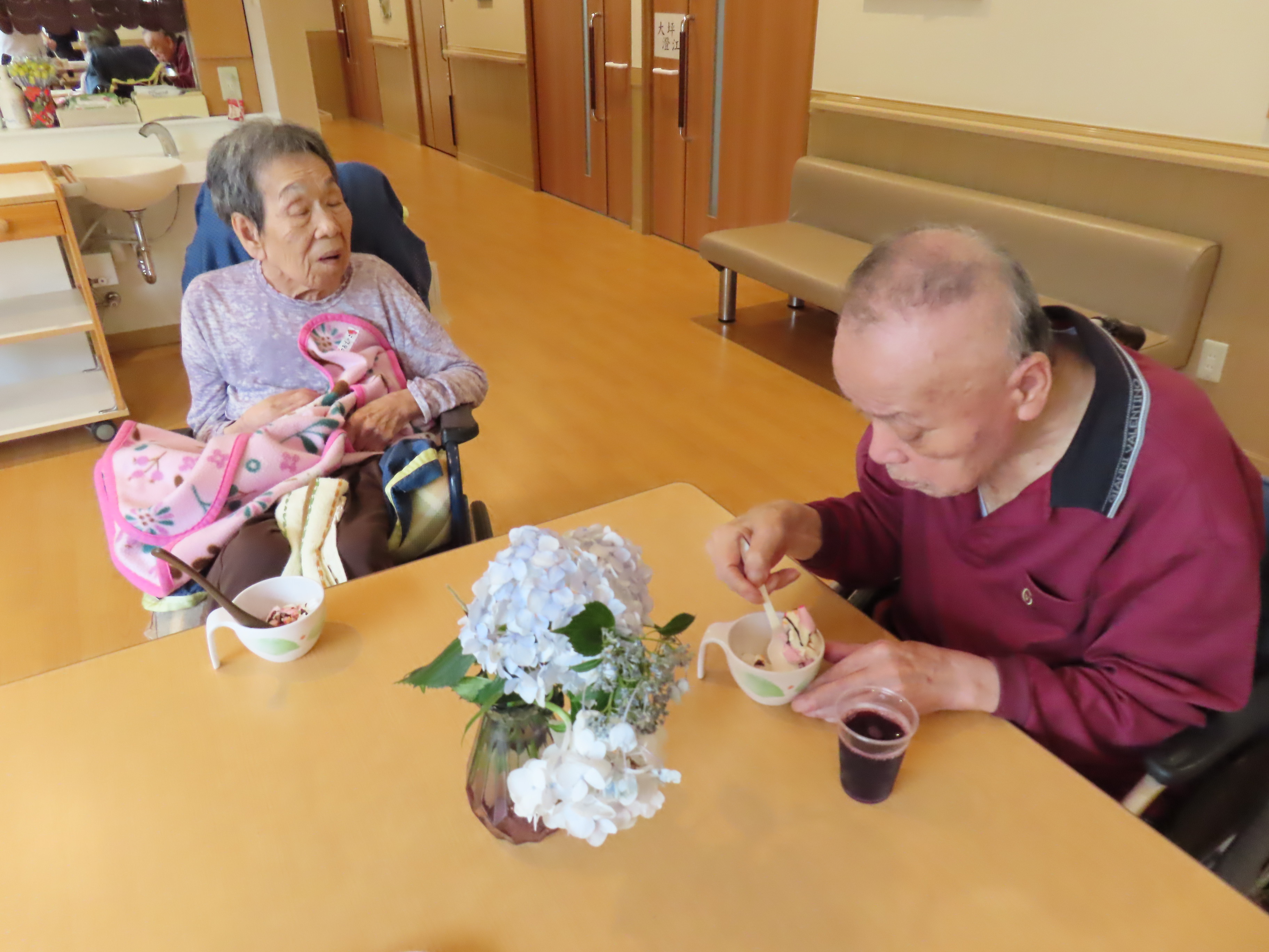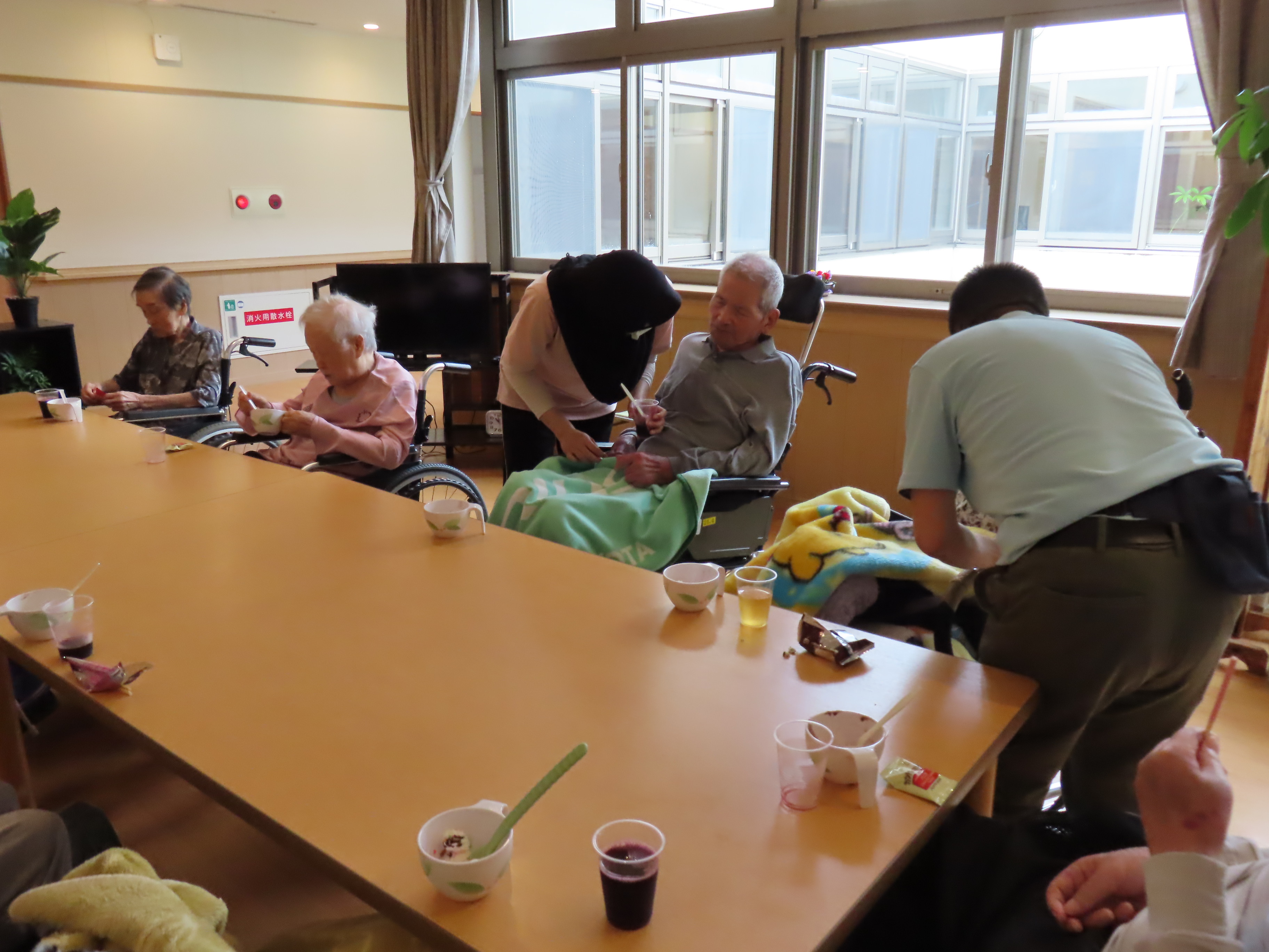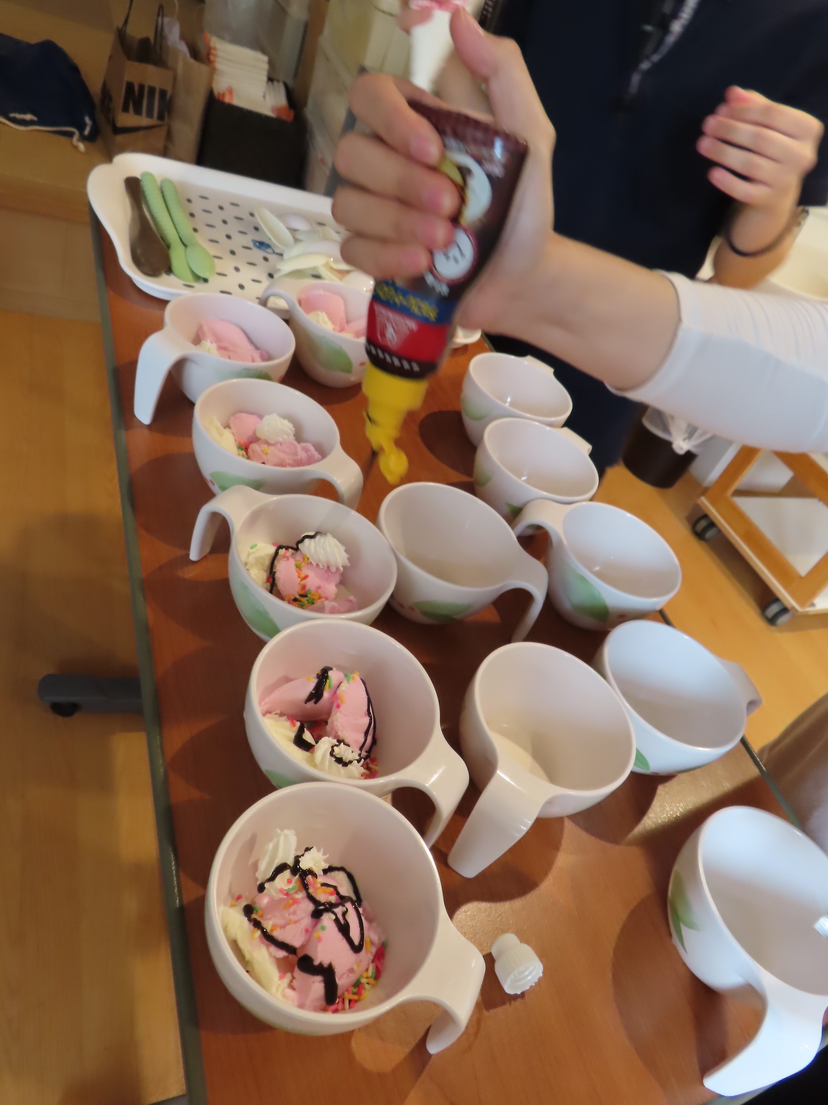 アイスクリームにトッピングをしてみんなで談笑しながらいただきました。