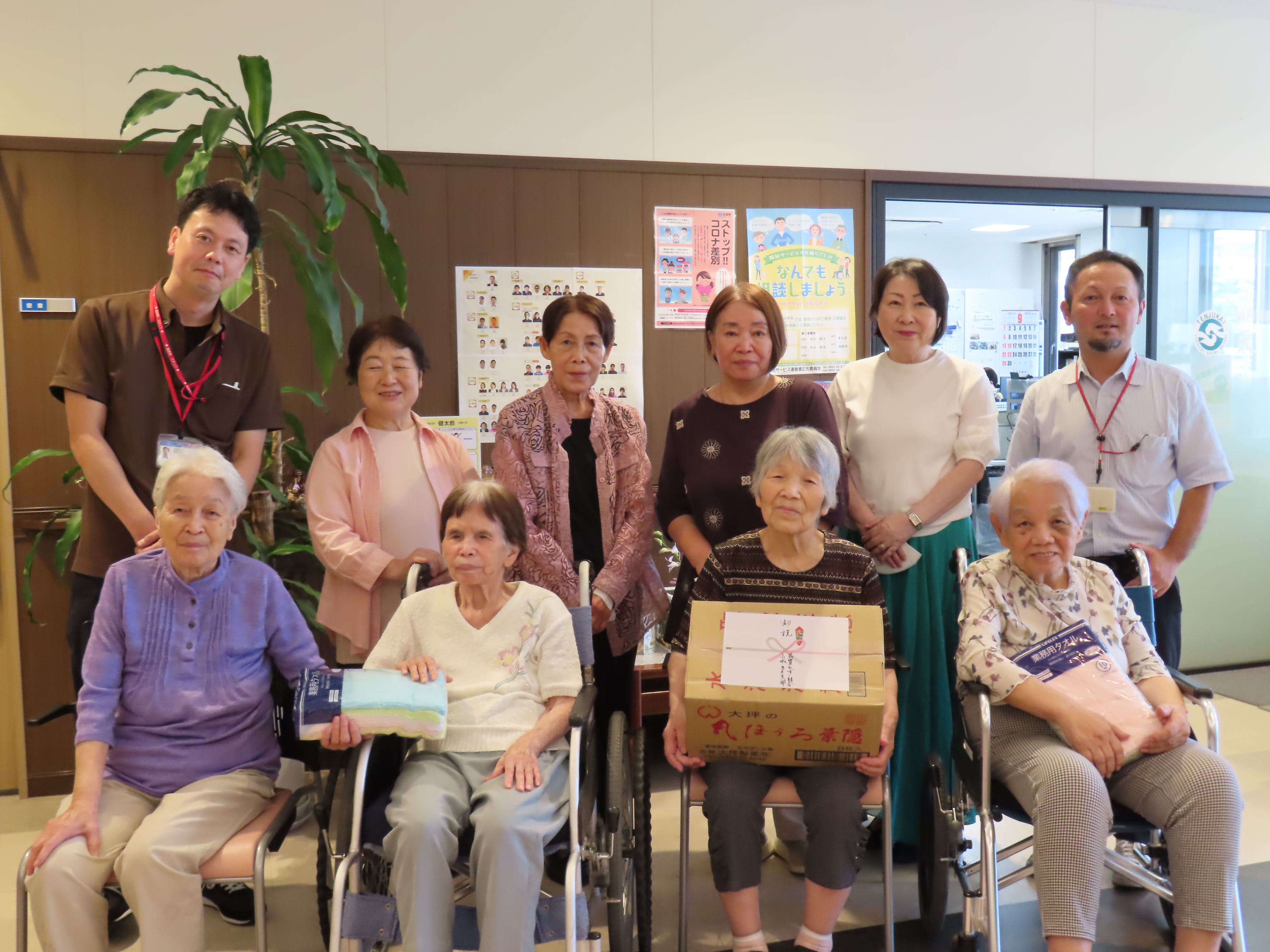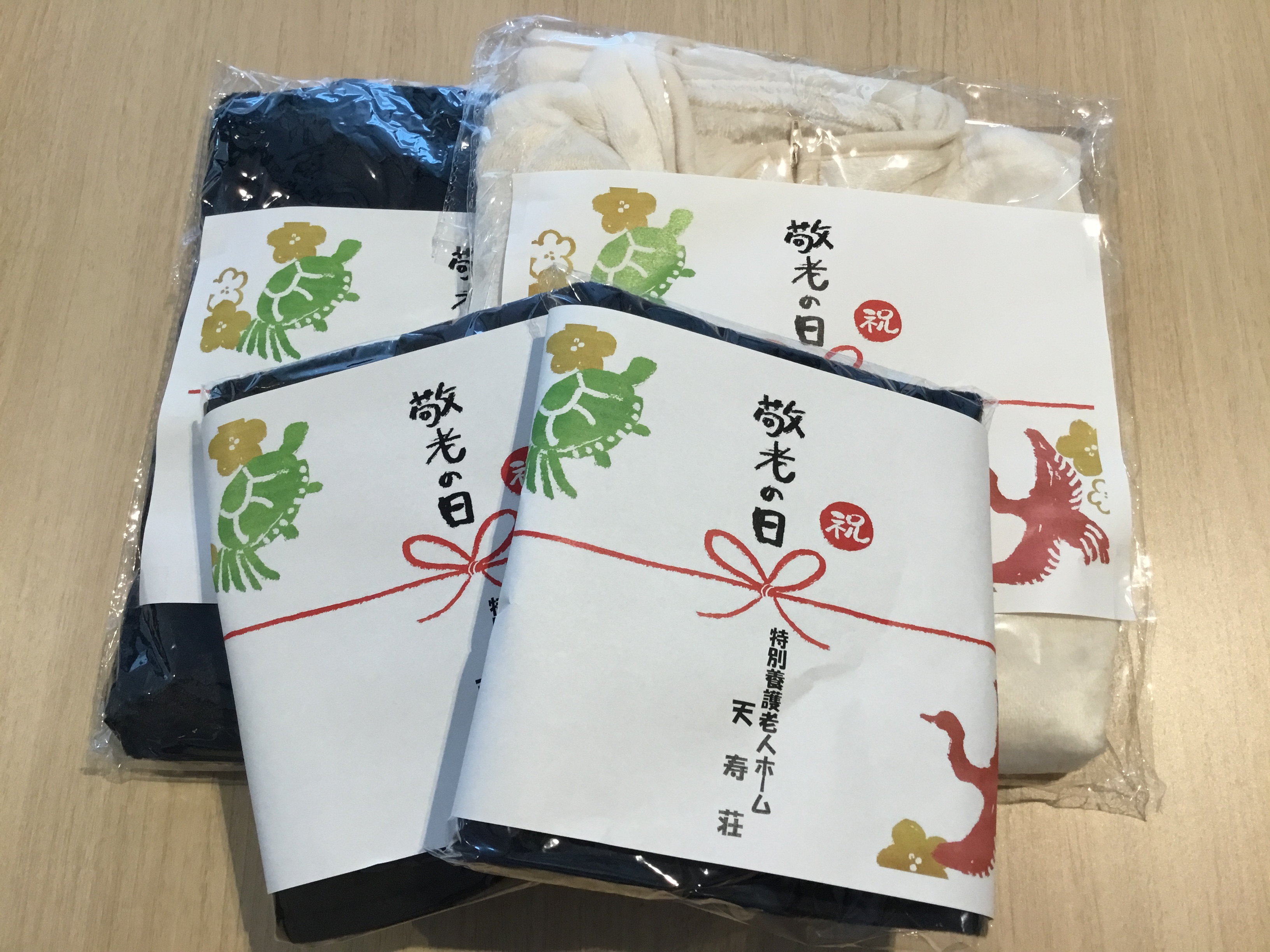 敬老の日を前に、天寿荘では13日に敬老祝いの記念品をお渡ししました。