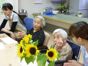 鮮やかに咲いたひまわりを眺めながら、お茶菓子もおいしくいただきました。