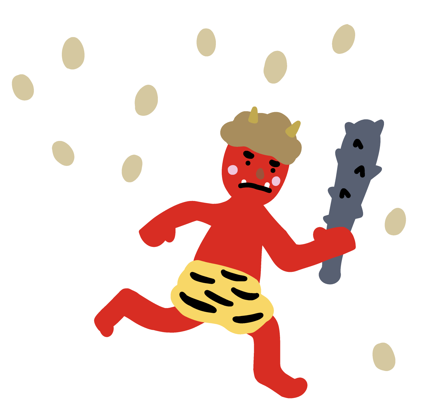 新聞紙とガムテープで作った「豆」で鬼を追い払いました!