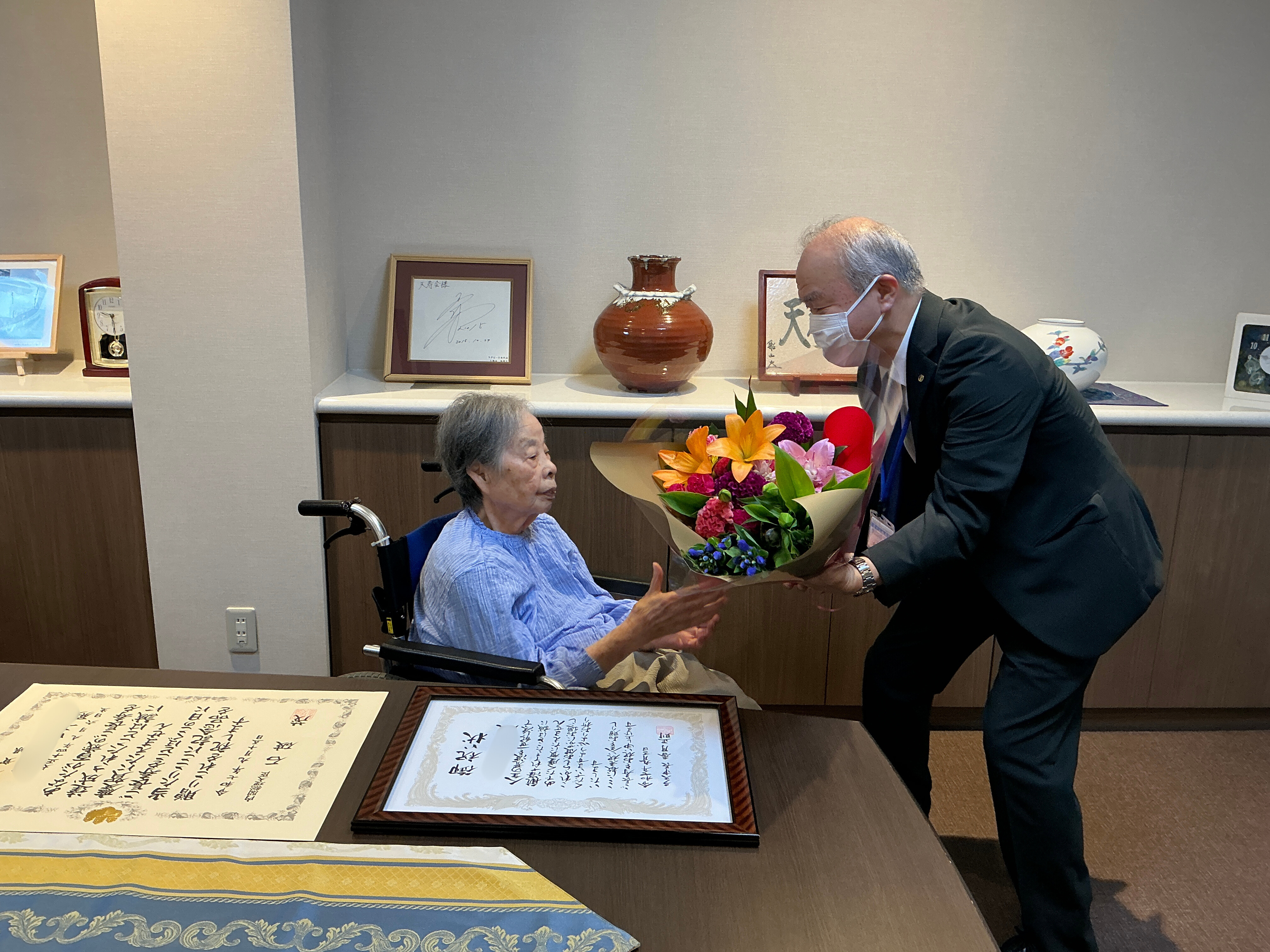 立派なお祝い状とお花に驚かれながら、嬉しそうに受け取っていらっしゃいました