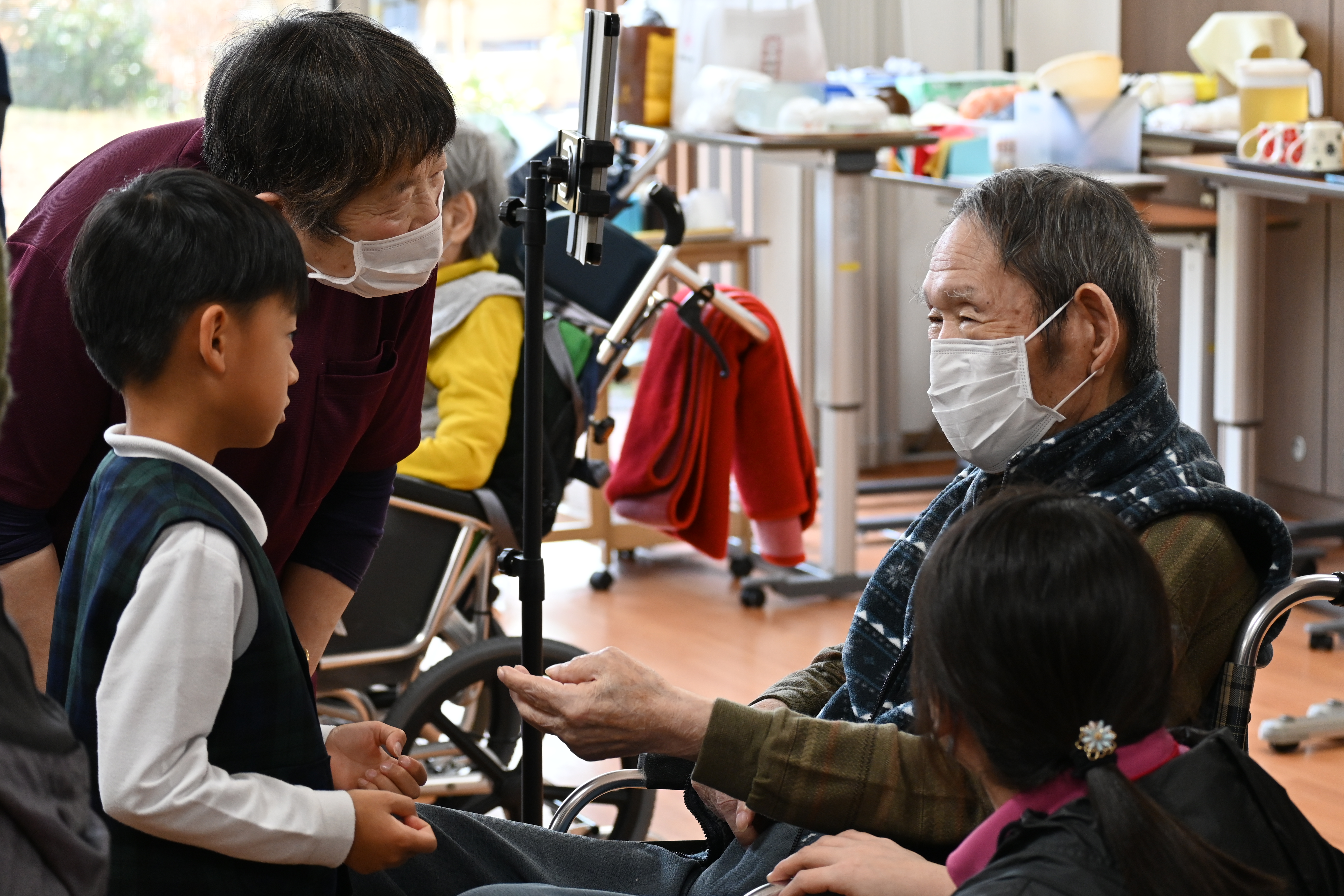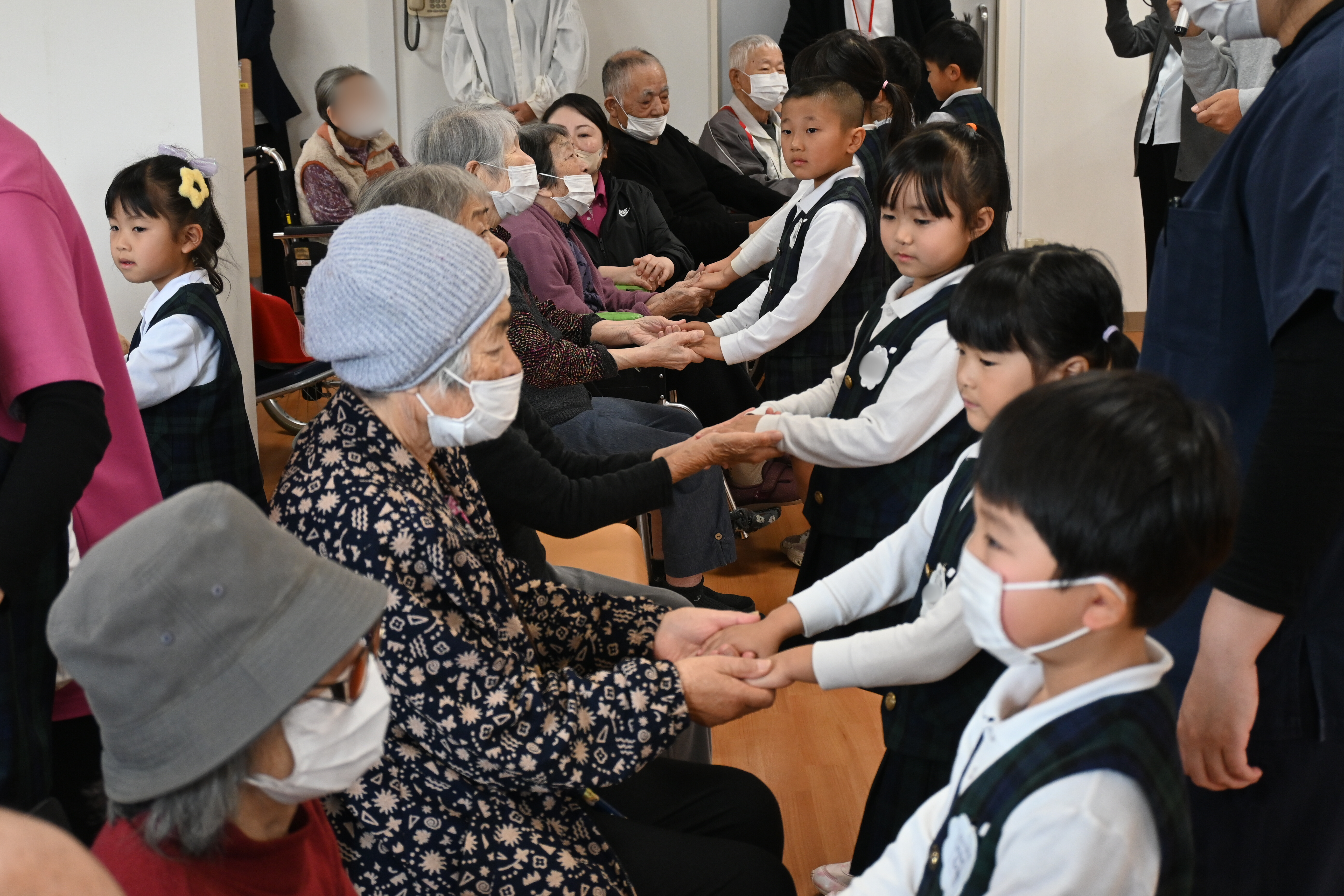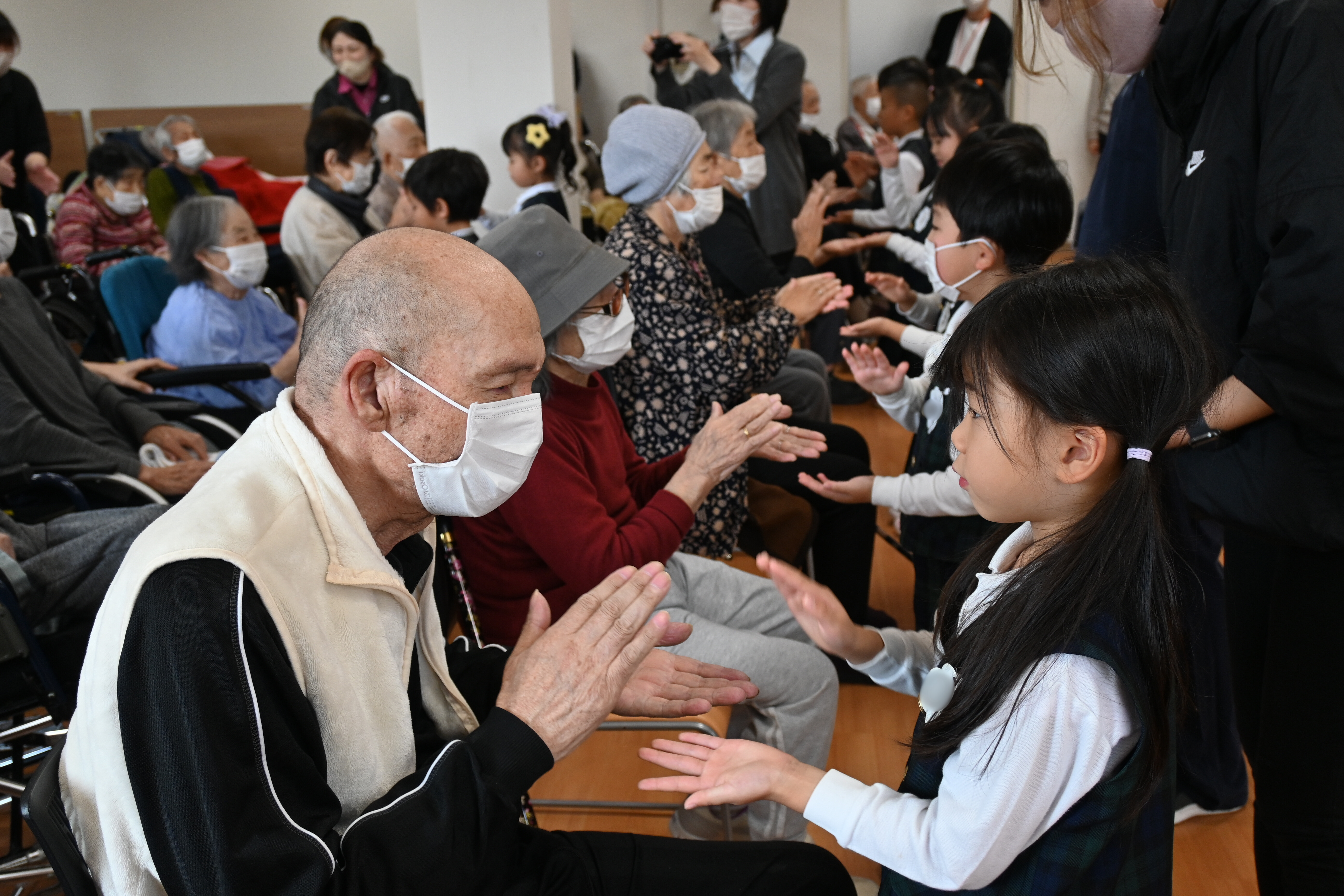 子供たちと接する時のご入所者様の優しい眼差しと表情が印象的でした。