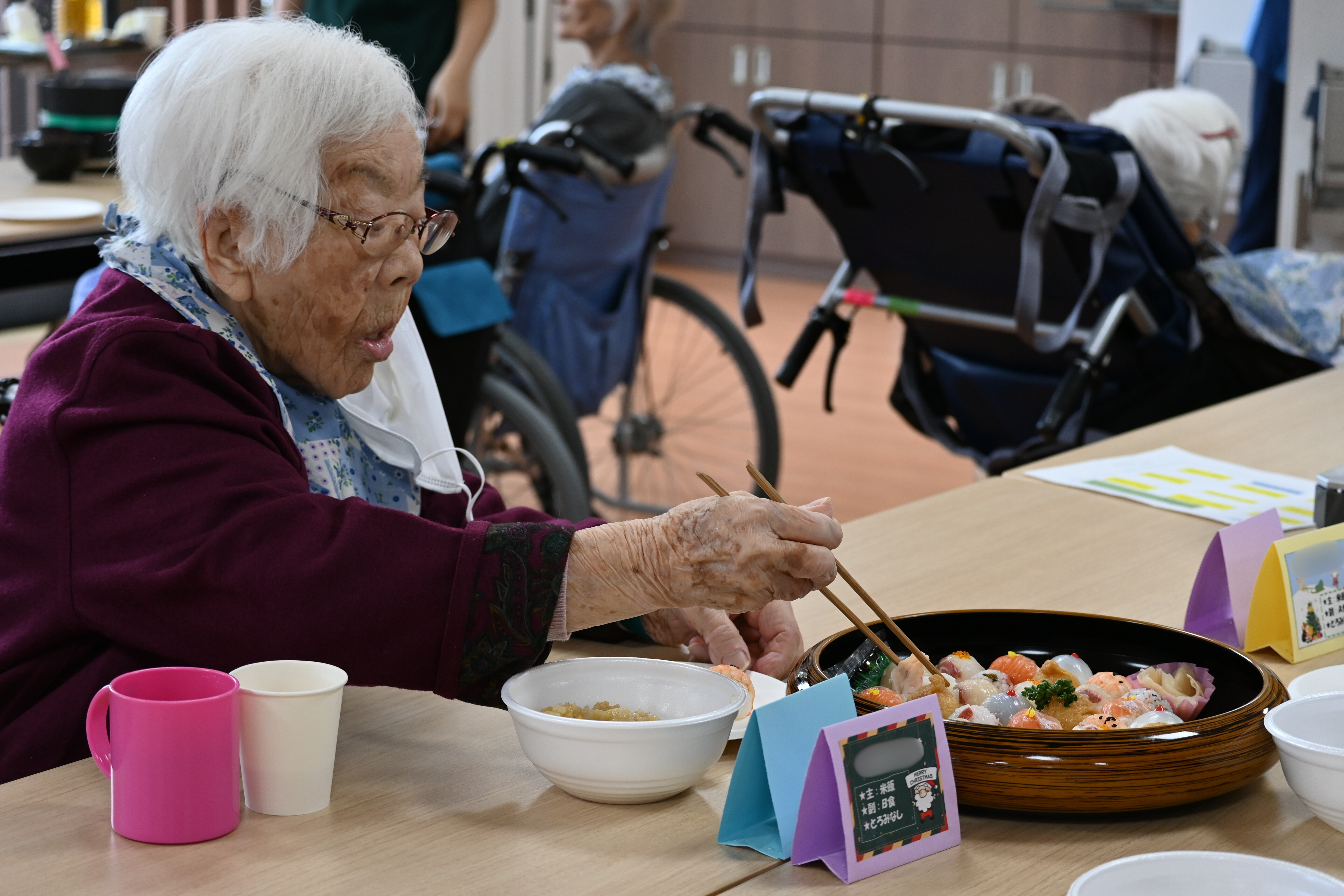 愛らしい子供たちの姿を見て、目を細めるご入所者様たち