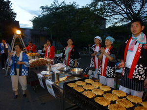 出店では、焼きとうもろこしや焼き鳥やお好み焼き。