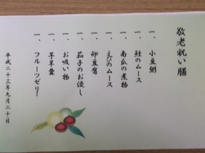 敬老式典ということで、お昼は祝い膳をいただきました。