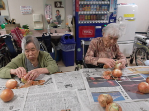 10月14日(金) よかよかクラブで茄子と玉葱の皮むきを行いました!!