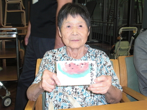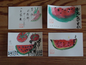 夏らしくスイカやトマトの絵を描きましたよ♪