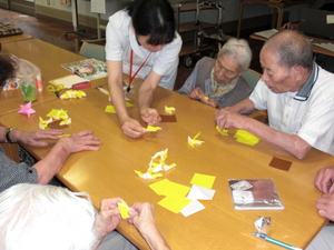 手指の訓練もかねて、折り紙でひまわりを作りました!