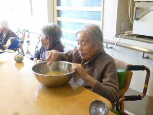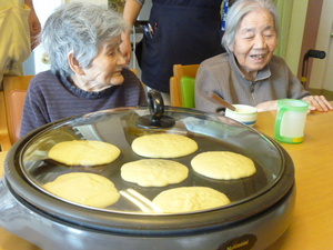 おやつにホットケーキを作りました。一緒に作ると、お話も弾みます
