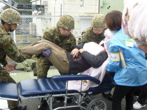 これは自衛隊車から寝たきりの方が降りてくるところです